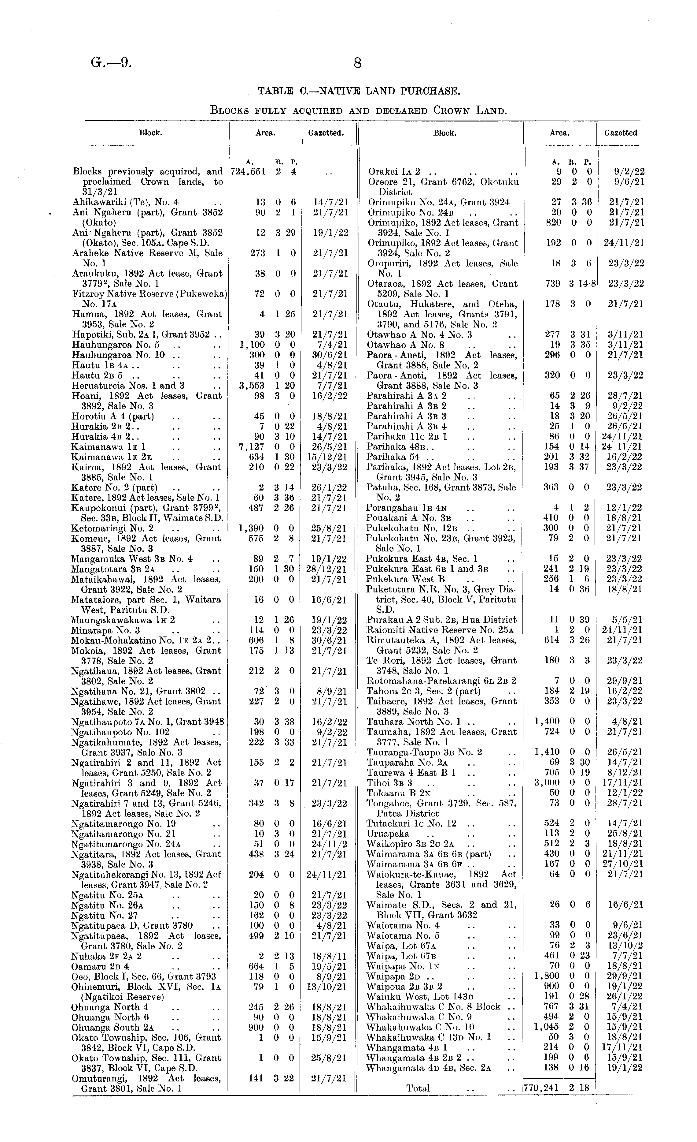 TABLE C.—NATIVE LAND PURCHASE. Blocks fully acquired and declared Crown Land.