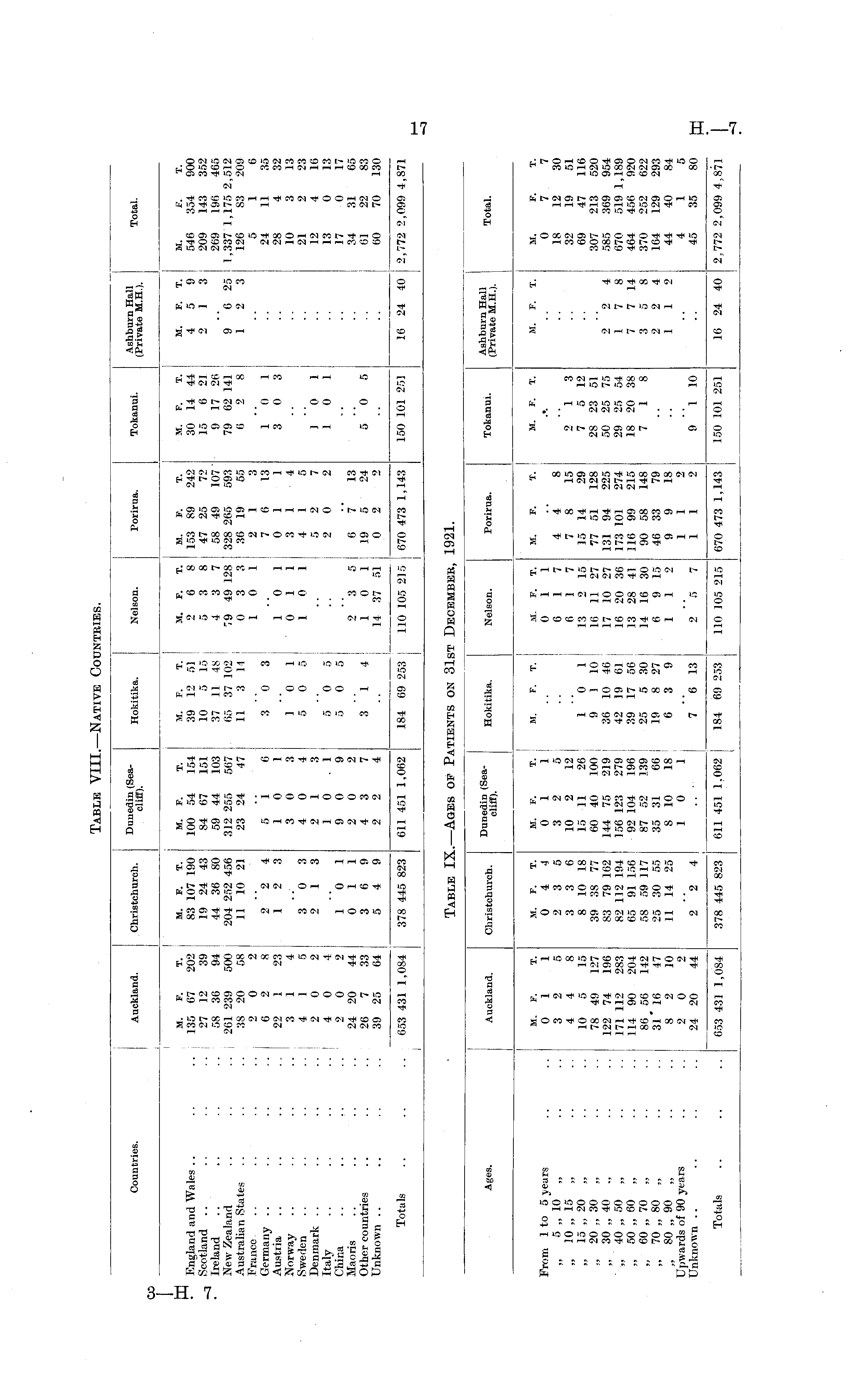 Countries. Auckland. Christchurch. Dunedin (Seacliff). Hokitika. Nelson. Porirua. Tokanui. Ashburn Hall (Private M.H.). Total. I " [ M. F. T. 39 12 51 10 5 15 37 11 48 65 37 102 11 3 14 3 0 3 1 0 1 5 0 5 5 0 5 5 0 5 3 1 4 M. F. T. M. F. 2 6 8 153 89 5 3 8 47 25 4 3 7 58 49 79 49 128 328 265 0 3 3 36 19 10 1 2 1 7 0 10 1 0 1 0 11 3 1 10 1 4 1 5 2 2 0 2 3 5 6 7 10 1 19 5 14 37 51 0 2 T. 242 72 107' 593 55 3 13 1 4 5 7 2 13 24 2 M. F. T. M. F. T. 4 5 9 546 354 900 2 13 209 143 352 269 196 465 9 6 25 1,337 1,175 2,512 12 3 126 83 209 5 16 24 11 35 28 4 32 10 3 13 21 2 23 12 4 16 13 0 13 17 0 17 34 31 65 61 22 83 60 70 130 England and Wales .. Scotland Ireland New Zealand Australian Stales France Germany Austria Norway .. Sweden Denmark Italy China Maoris Other countries Unknown M. F. T. 135 67 202 27 12 39 58 36 94 .. 261 239 500 .. 38 20 58 2 0 2 6 2 8 22 1 23 3 14 4 1 5 2 0 2 4 0 4 2 0 2 .. 24 20 44 .. 26 7 33 .. 39 25 64 M. F. T. 83 107 190 19 24 43 44 36 80 204 252 456 11 10 21 2 2 4 1 2 3 3 0 3 2 1 3 1 0 1 0 1 1 3 6 9 5 4 9 M. F. 100 54 84 67 59 44 312 255 23 24 5 1 1 0 3 0 4 0 2 1 1 0 9 0 2 0 4 3 2 2 T. 154 151 103 567 47 6 1 3 4 3 . 1 9 2 7 4 M. F. T. 30 14 44 15 6 21 9 17 26 79 62 141 6 2 8 1 0 1 3 0 3 1 0 1 1 0 1 5 0 5 Totals .. 653 431 1,084 378 445 823 611 451 1,062 184 69 253 ! 110 105 215 i 670 473 1,143 150 101 251 16 24 40 2,772 2,099 4,87: I