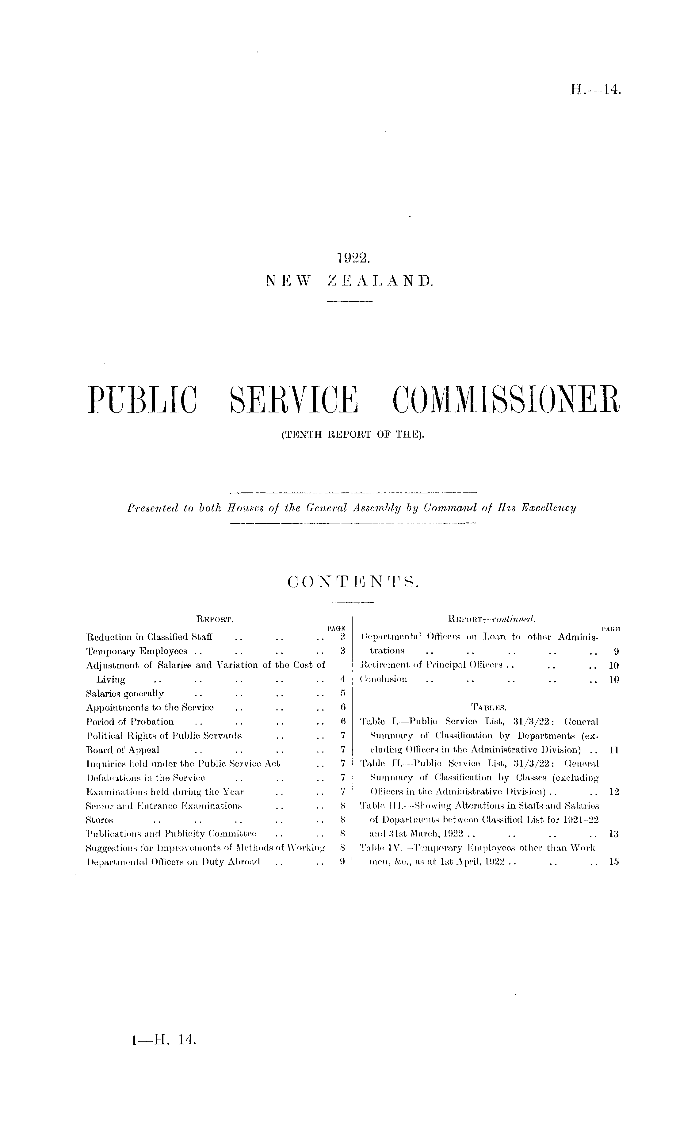 PUBLIC SERVICE COMMISSIONER (TENTH REPORT OF THE).