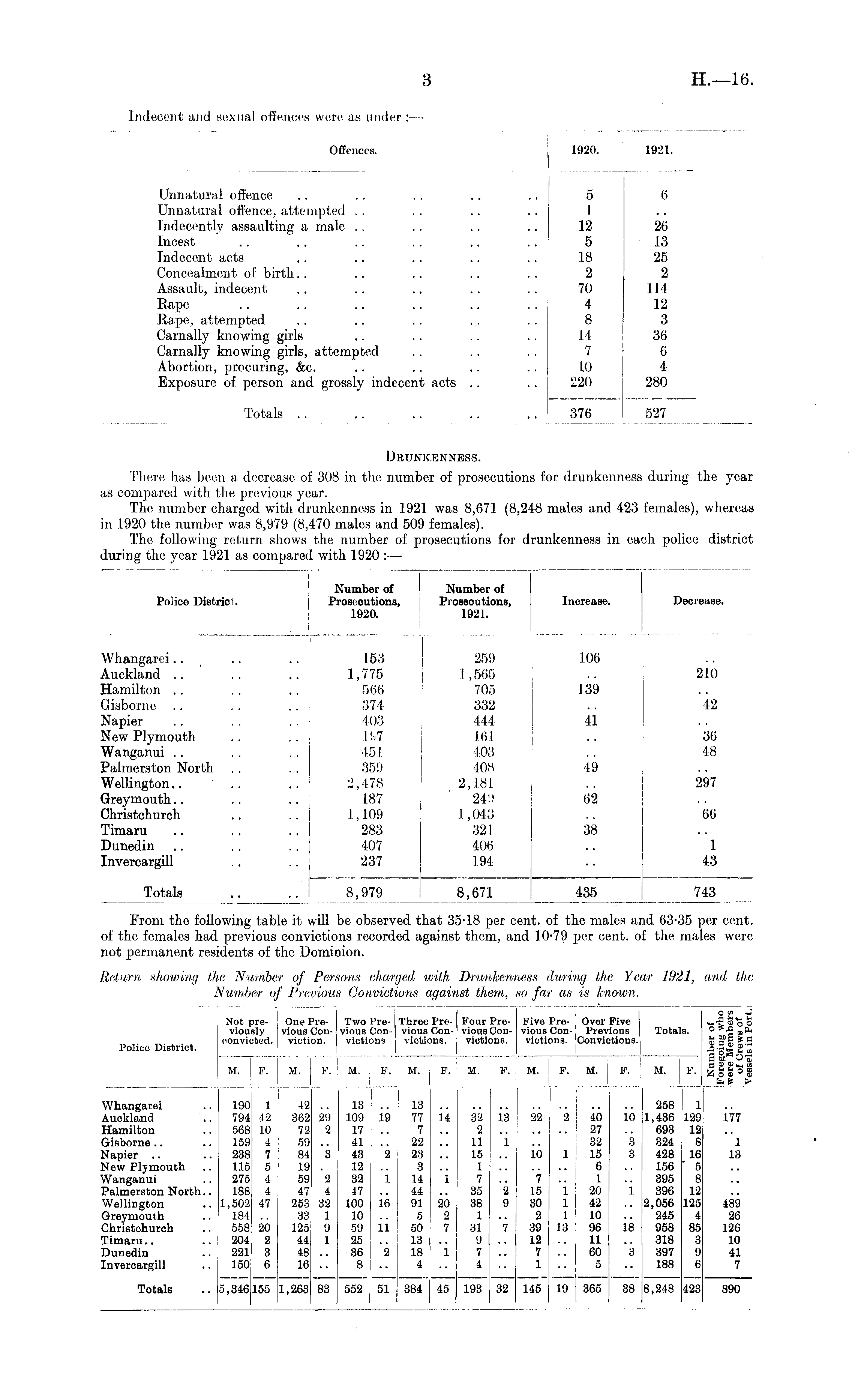 I Number of Police Districi. Proscoutions, 1920. Number of Proseoutions, 1921. _L Increase. Decrease. Whangarei.. .. .. 153 Auckland .. .. .. 1,775 Hamilton .. .. .. 566 jisborne .. . . . . 374 STapier .. .. .. 403 Slew Plymouth .. .. 167 SVanganui .. . . . . 451 Palmerston North . . . . 35!) Wellington.. ' .. .. 2,478 3-reymouth.. .. .. 187 Christchuroh .. .. 1.109 rimaru .. .. .. 283 Dunedin .. . . .. 407 Invercargill .. .. 237 259 I ,565 705 332 444 161 403 408 2,181 24!! 1,043 321 406 194 106 139 41 49 62 38 210 '42 36 48 297 66 1 43 Totals .. .. 8,979 8,979 8,671 8,671 435 435 743