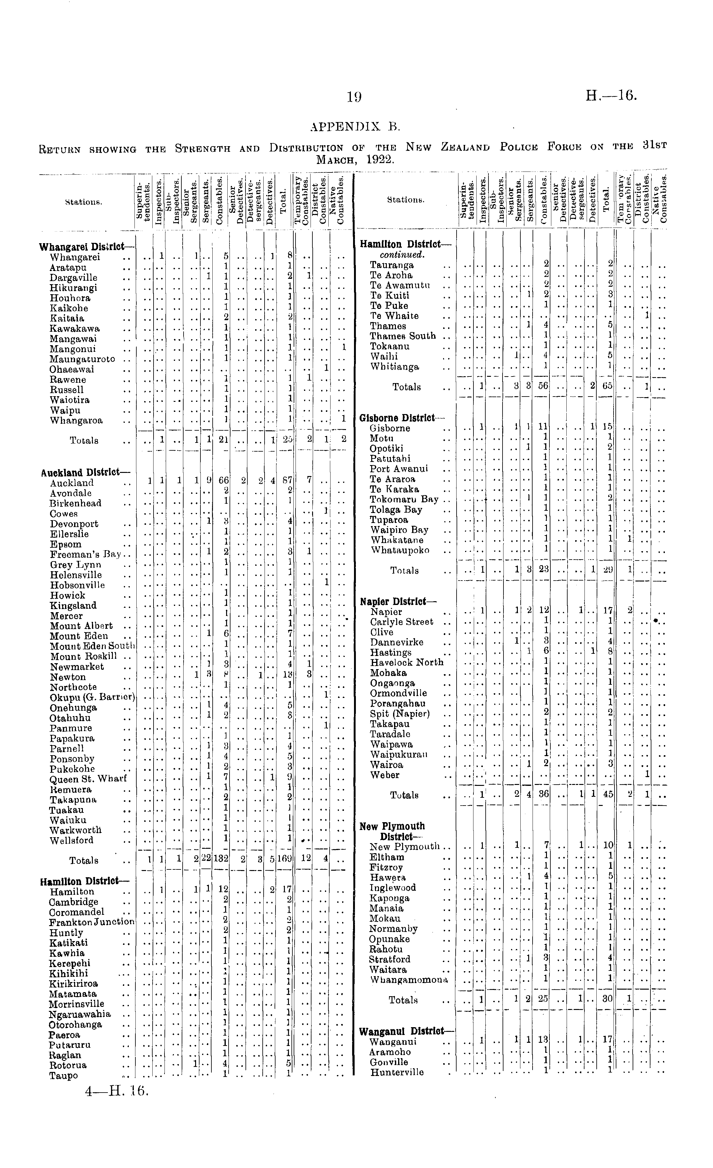 APPENDIX B. Return showing the Strength and Distribution of the New Zealand Police Force on the 31st March, 1922.