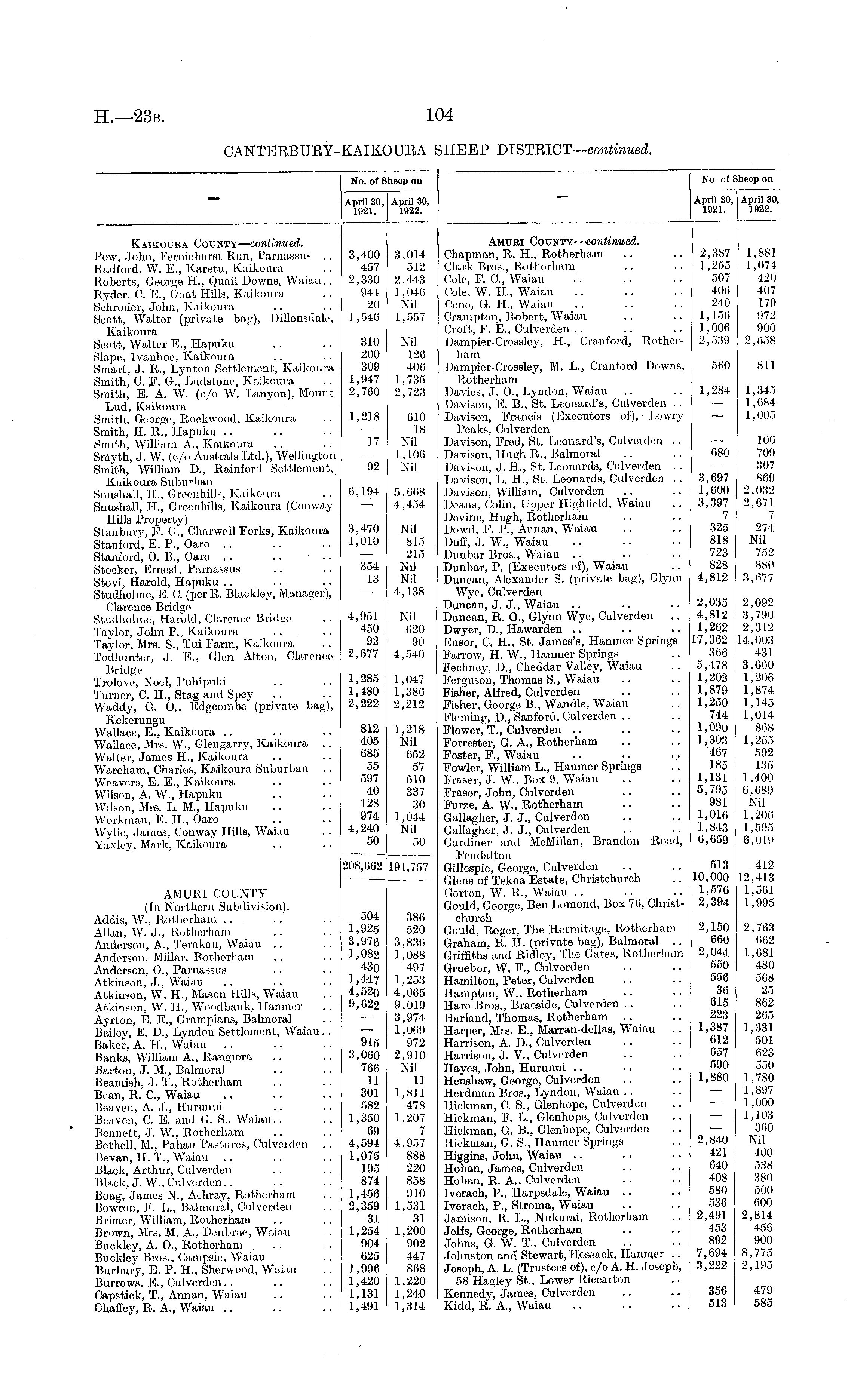 CANTERBURY-KAIKOURA SHEEP DISTRICT— continued.
