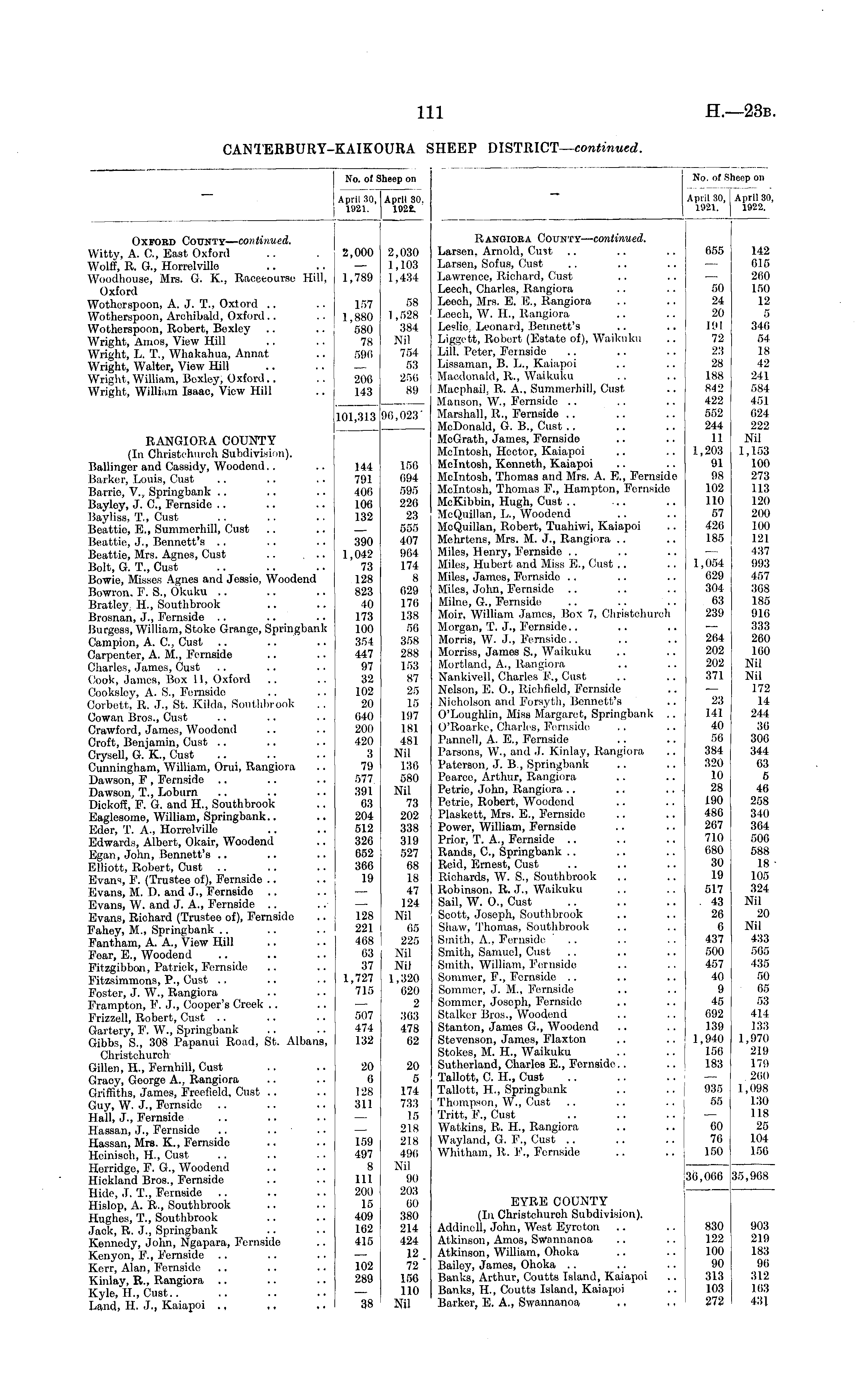 CANTERBURY-KAIKOURA SHEEP DISTRICT— continued.