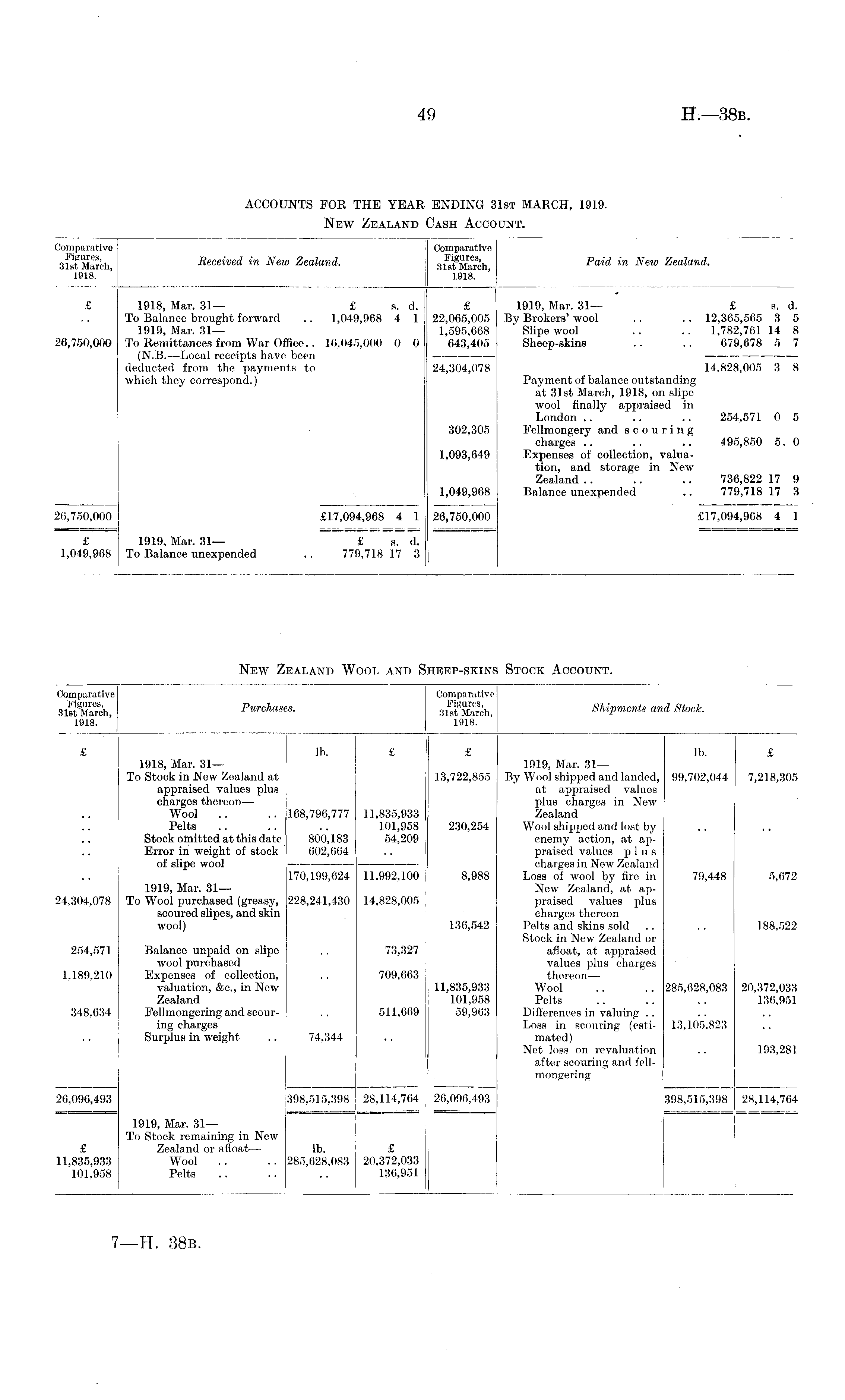ACCOUNTS FOR THE YEAR ENDING 31st MARCH, 1919. New Zealand Cash Account.