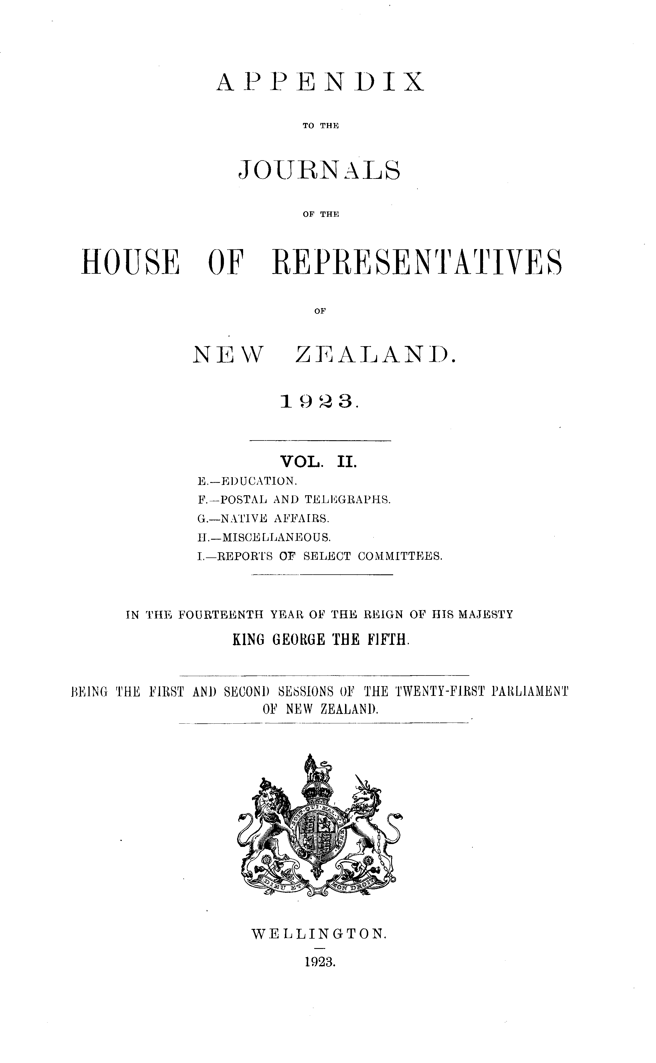 BEING THE FIRST AND SECOND SESSIONS OF THE TWENTY-FIRST PARLIAMENT OF NEW ZEALAND.