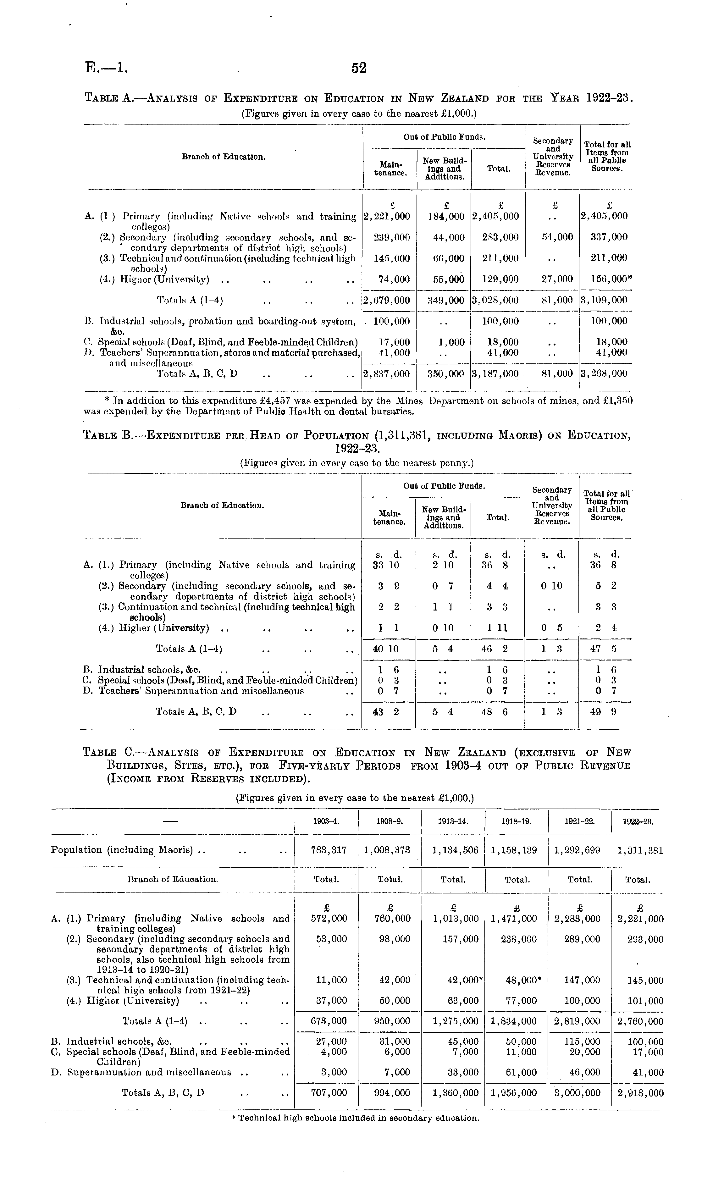 Table A.—Analysis of Expenditure on Education in New Zealand for the Year 1922-23.