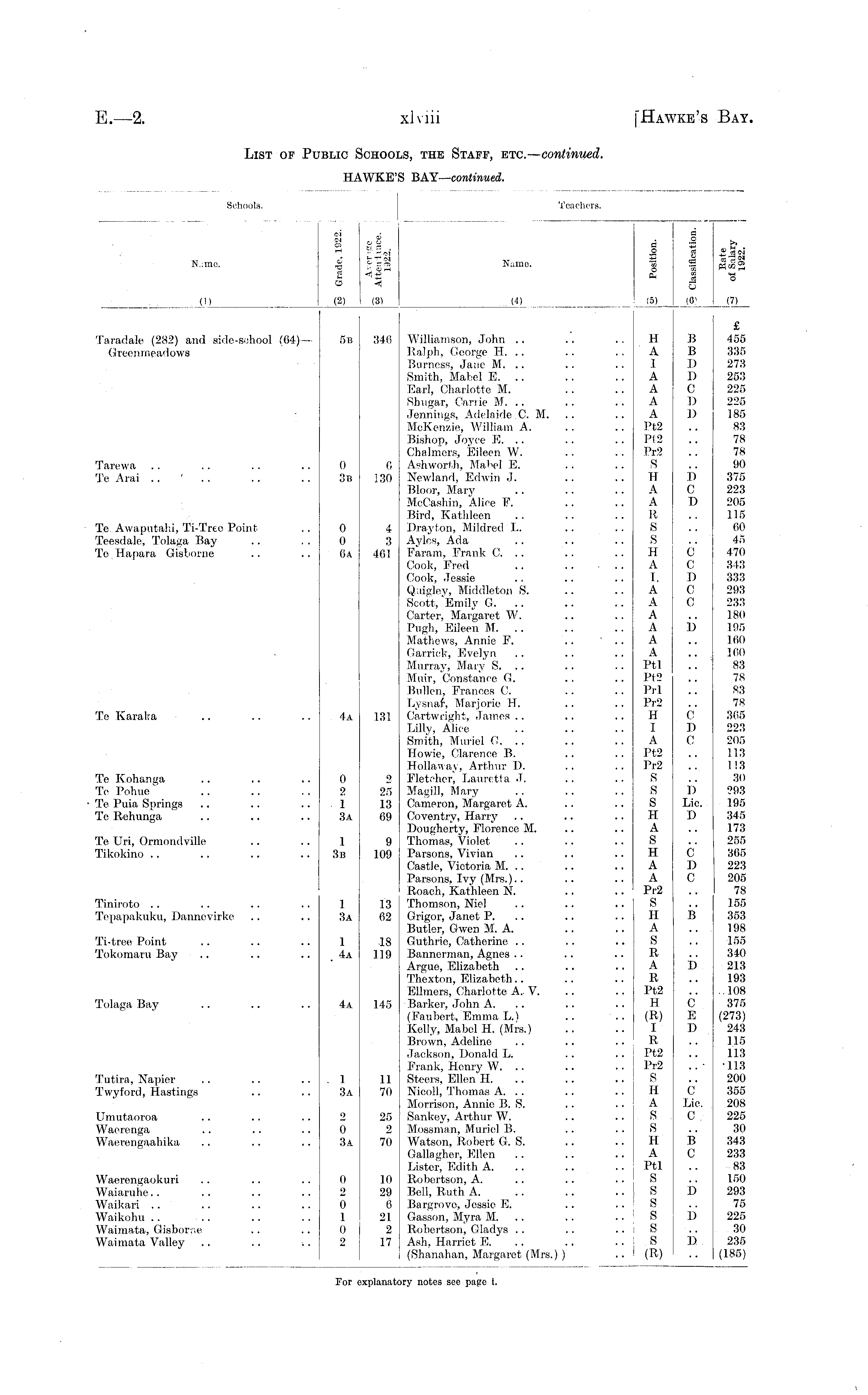 List of Public Schools, the Staff, etc.— continued. HAWKE'S BAY— continued.