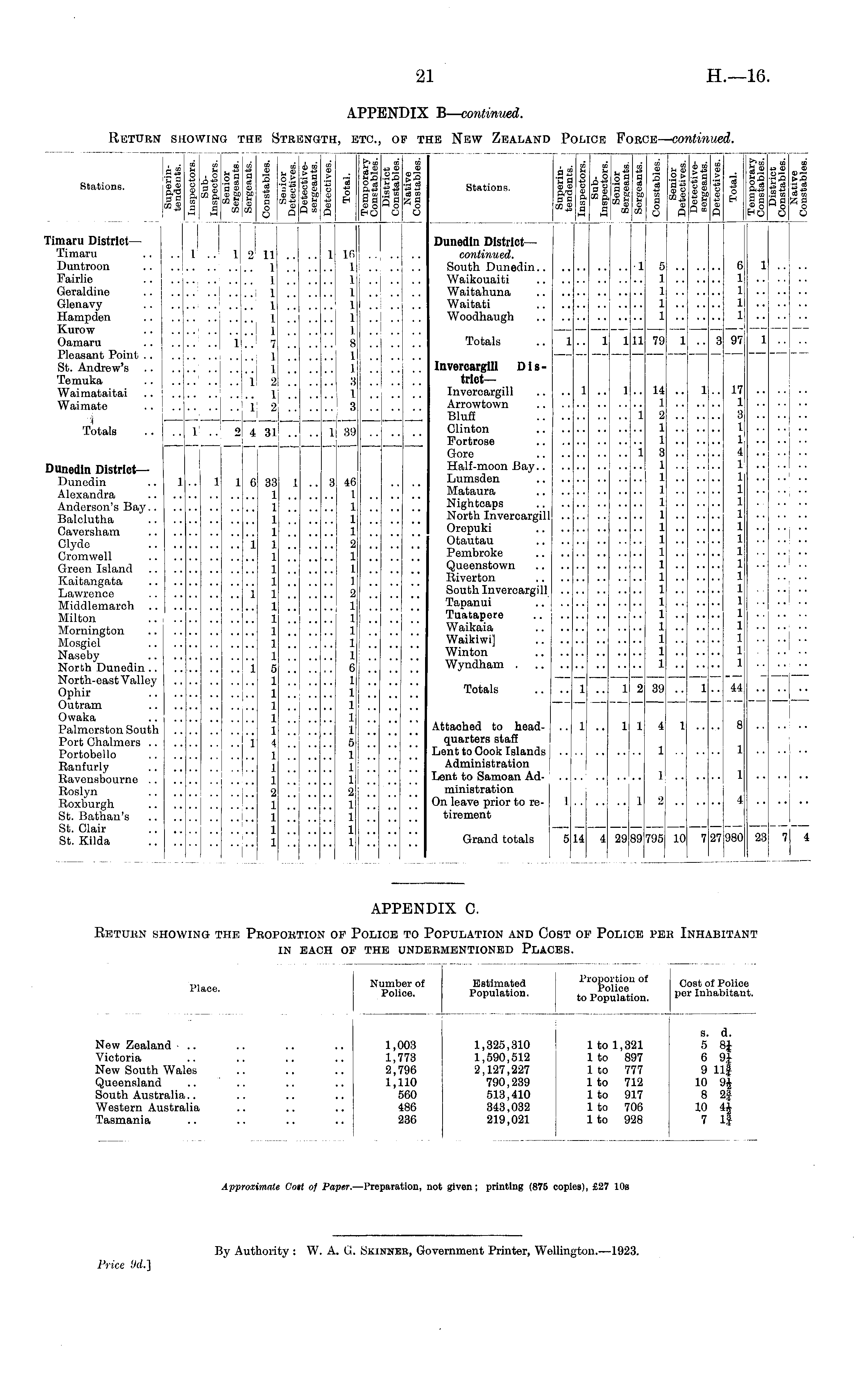 APPENDIX B— continued. Return showing the Strength, etc., of the New Zealand Police Force— continued.