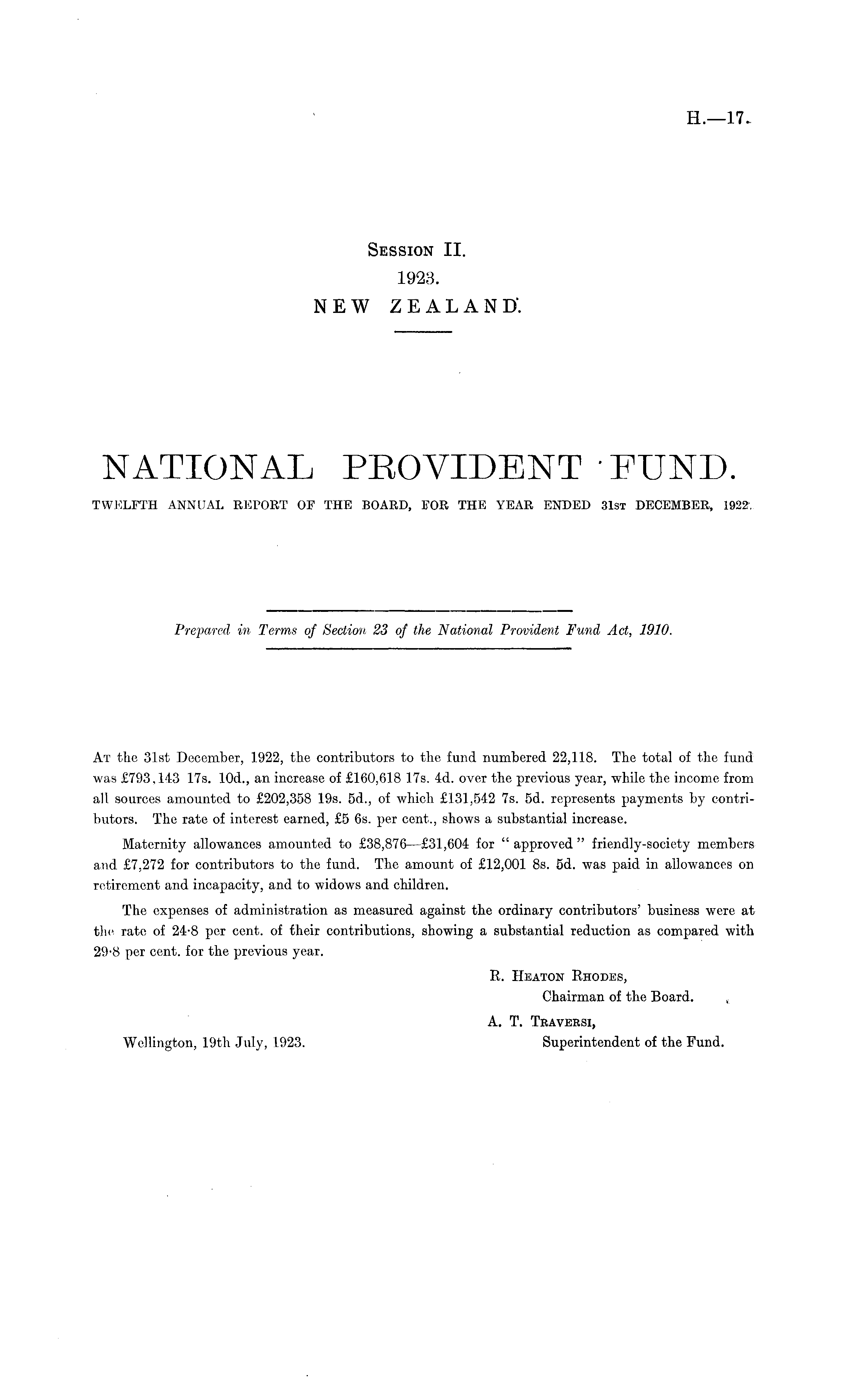 NATIONAL PROVIDENT FUND. TWELFTH ANNUAL REPORT OF THE BOARD, FOR THE YEAR ENDED 31st DECEMBER, 1922.