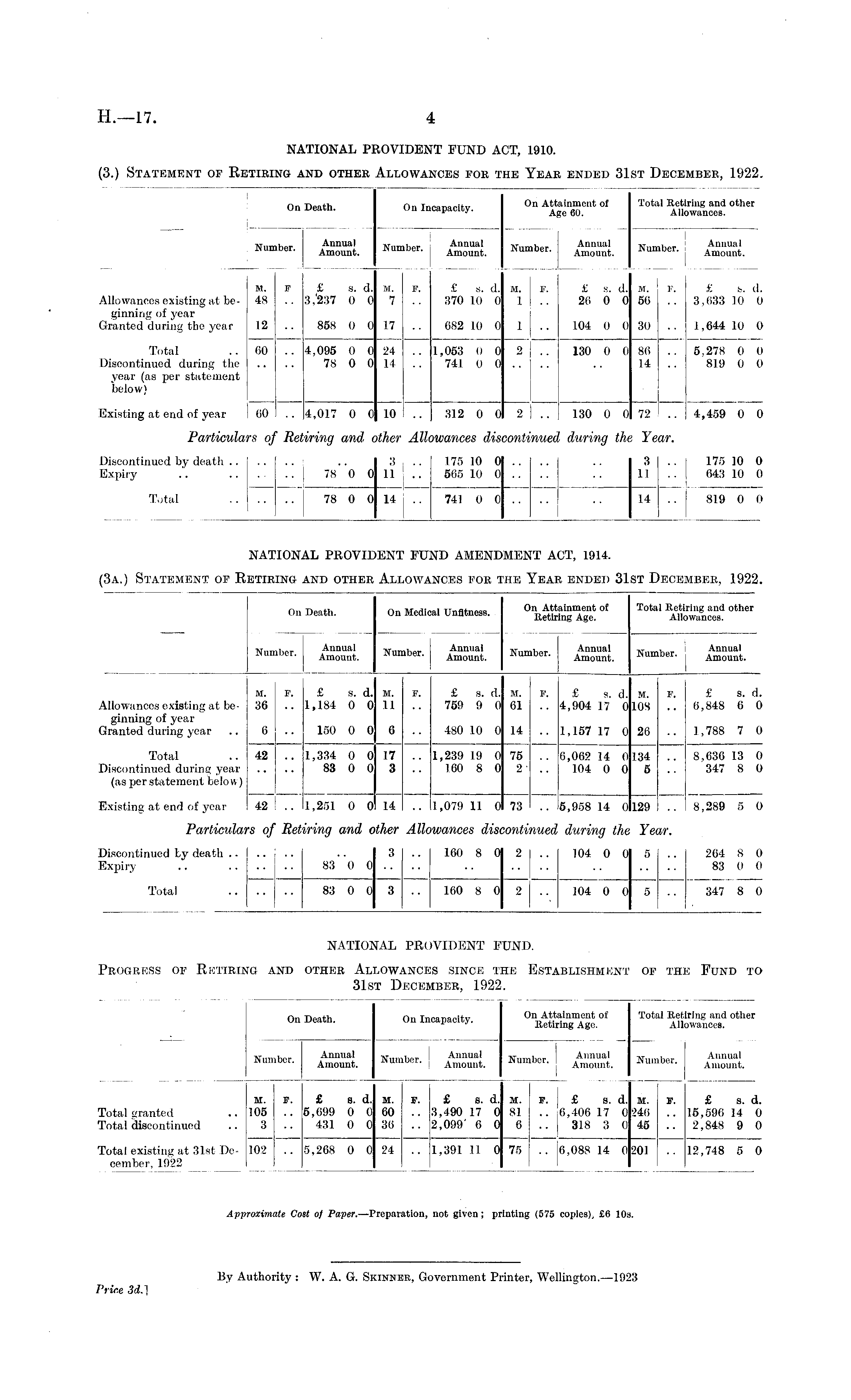NATIONAL PROVIDENT FUND AMENDMENT ACT, 1914. (3a.) Statement of Retiring and other Allowances for the Year ended 31st December, 1922.