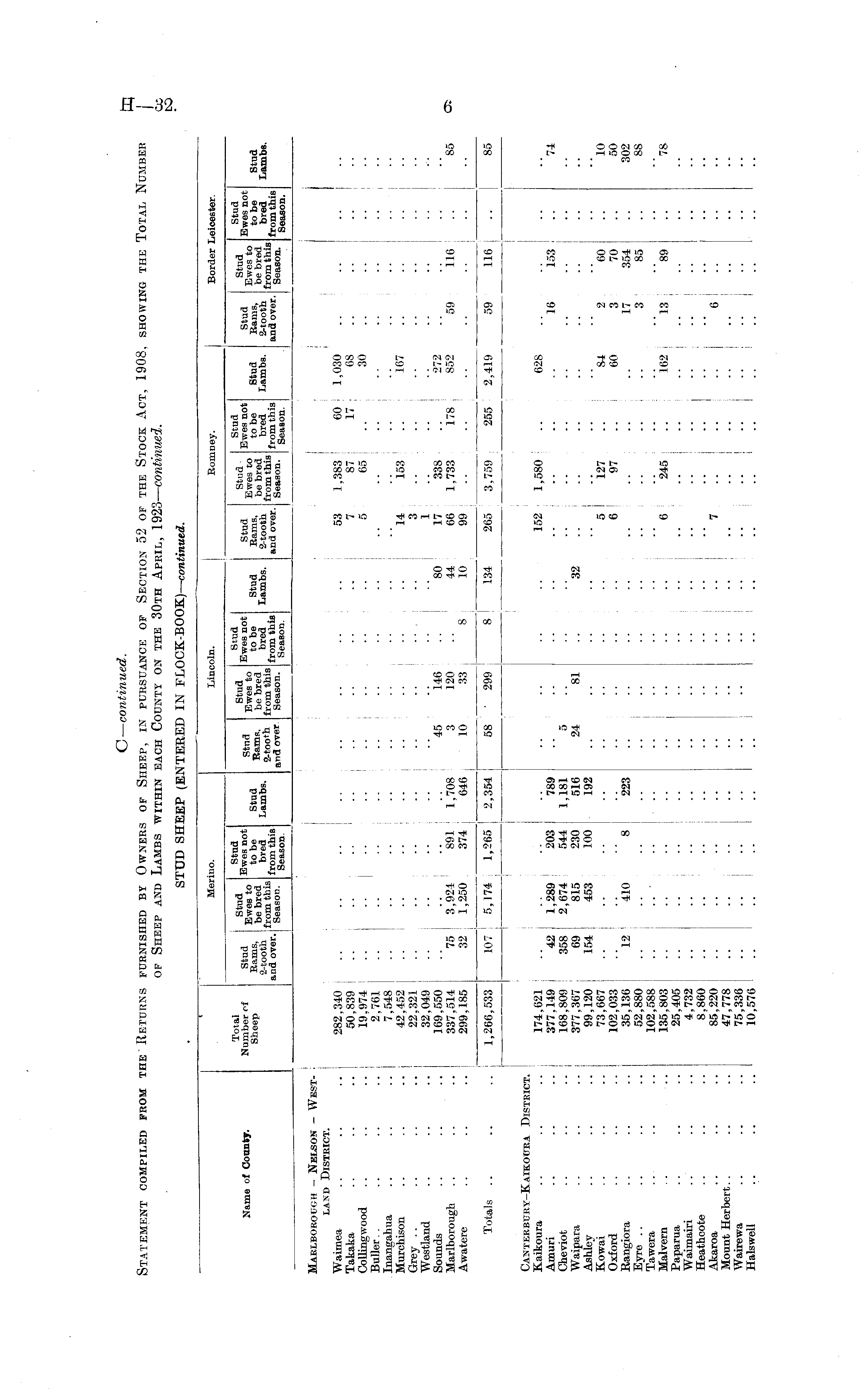 C— continued. Statement compiled from the Returns furnished by Owners of Sheep, in pursuance of Section 52 of the Stock Act, 1908, showing the Total Number of Sheep and Lambs within each County on the 30th April, 1923— continued. STUD SHEEP (ENTERED IN FLOCK-BOOK)— continued.