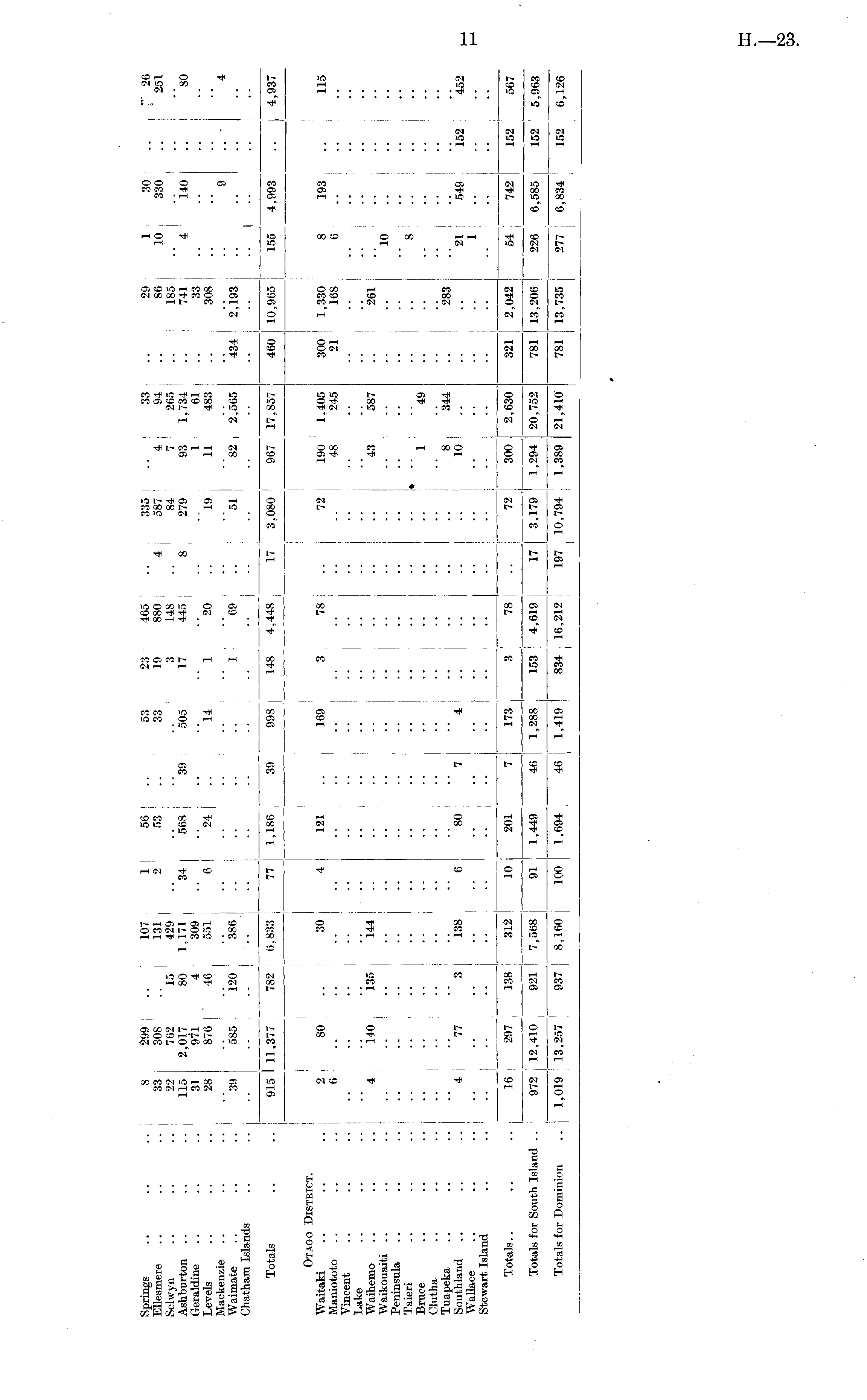 Springs .. .. .. 8 299 Ellesmere .. .. .. 33 308 Selwyn .. .. .. 22 762 Ashburton .. .. .. 115 2,017 Geraldine .. .. .. 31 9ll Levels .. .. .. 28 876 Mackenzie Waimate .. .. .. 39 585 Chatham Islands 299 308 762 2,017 971 876 585 15 80 4 46 120 15 80 4 46 120 107 131 429 1,171 309 551 386 107 131 429 1,171 309 551 386 1 2 34 6 1 2 34 6 56 ! 53 | 568 | 24 39 53 33 505 14 23 19 17 1 1 465 880 148 445 20 69 4 8 335 587 84 279 19 51 33 ; 4 j 94 7 265 93 | 1,734 1 ! 61 11 483 82 I 2,565 29 86 j 185 I 741 j 33 308 434 2,193 1 10 4 30 330 i40 9 '"' 26 251 "so 4 ZTTi ,, „-- 460 10,965 Totals .. .. 915 I 11,377 915 11,377 782 782 6,833 6,833 77 77 1,186 39 998 148 4,448 17 3,080 967 17,857 155 4,993 ) 4,937 -1- -' I- .1- .- ■ • ••] lj J-IJ I J- -L ) tJ I I . Otago District. i r Waitaki .. .. .. 2 80 Maniototo .. .. .. 6 .. Vincent Lake Waihemo .. .. .. 4 140 Waikouaiti Peninsula Taieri Bruce Clutha Tuapeka Southland .. .. .. 4 77 Wallace Stewart Island i.35 3 30 144 138 4 6 121 169 3 78 72 190 1,405 48 245 300 1,330 21 168 8 6 193 115 80 7 4 * ! 43 587 1 49 8 344 10 261 283 "lO 8 21 1 549 152 452 Totals.. .. .. 16 297 16 297 138 138 312 j 312 ! 10 10 201 173 3 78 72 300 2,630 321 2,042 54 742 152 567 Totals for South Island .. 972 12,410 Totals for Dominion .. 1,019 13,257 I 972 12,410 921 937 921 j 7,568 j 8,160 7,568 | 91 100 91 1,449 46 | 1,288 153 4,619 17 3,179 1,294 20,752 781 13,206 226 6,585 152 5,963 1,694 46 1,419 J 834 16,212 I 197 10,794 1,389 I 21,410 781 ' 13,735 277 6,834 152 6,126