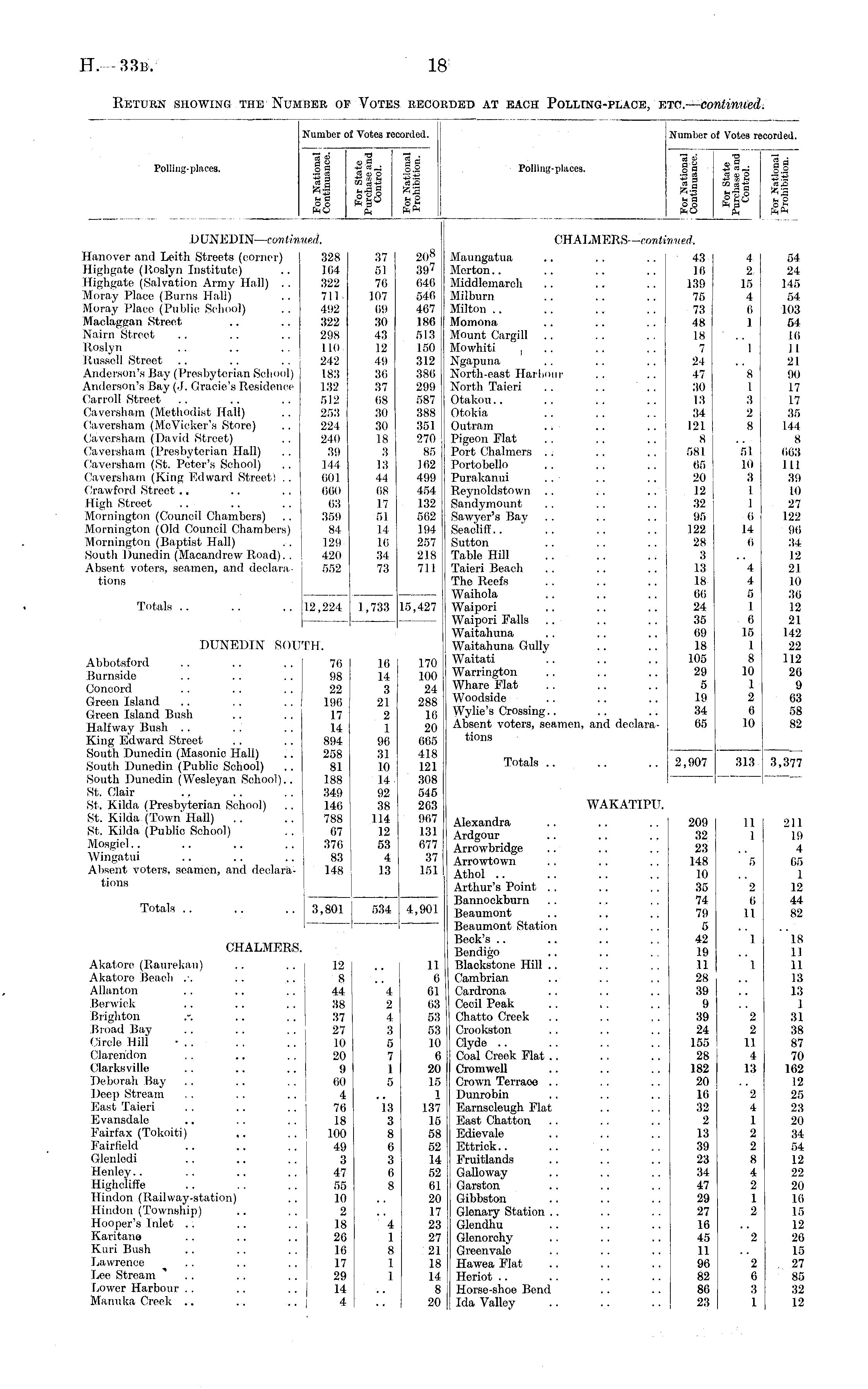 Number if Votes recorded. Number )f Votes n icorded. Polling-places. li 3] t. a o o CmO og i g -£ a - o .2 ri a, o .— jj w ri-a ri,o SI 5 SS CM » h Polling-places. M u ■a o Cm5 s° ■ S a DUNEDIN— contim ,ued. CHALMERS— contt inued. 54 24 145 54 103 54 16 II 21 90 17 17 35 144 8 603 1(1 39 10 27 122 90 34 12 21 10 36 12 21 142 22 112 26 9 63 58 82 Hanover and Leith Streets (corner) Highgate (Roslyn Institute) Highgate (Salvation Army Hall) . . Moray Place (Burns Hall) Moray Place (Public School) Maclaggan Street Nairn Street Roslyn Russell Street Anderson's Bay (Presbyterian .School) Anderson's Bay (J. Gracie's Residence Carroll Street Caversham (Methodist Hall) Caversham (McVieker's Store) Caversham (David Street) Caversham (Presbyterian Hall) Caversham (St. Peter's School) Caversham (King Edward Street) .. Crawford Street High Street Mornington (Council Chambers) Mornington (Old Council Chambers) Mornington (Baptist Hall) South Dunedin (Macandrow Road). . ! Absent voters, seamen, and declarations 328 164 322 711 492 322 298 110 242 183 132 512 253 224 240 39 144 001 060 03 359 84 129 420 552 37 51 70 107 09 30 43 12 49 36 37 68 30 30 18 3 13 44 68 17 51 14 10 34 73 20» 39 7 646 546 467 186 518 150 312 380 299 587 388 351 270 85 162 499 454 132 562 194 257 218 711 Maungatua Morton Middlemarch Milburn Milton Momona Mount Cargill Mowhiti i • • Ngapuna North-east Harbour North Taieri .. .. Otakou Otokia Outram ., ■ Pigeon Flat Port Chalmers Portobello Purakanui Reynoldstown Sandymount Sawyer's Bay Seacliff.. Sutton Table Hill Taieri Beach The Reefs Waihola Waipori Waipori Falls Waitahuna Waitahuna Gully Waitati Warrington Whare Flat Woodside Wylie's Crossing.. Absent voters, seamen, and declarations 43 10 139 75 73 48 18 7 24 47 30 13 34 121 8 581 05 20 12 32 95 122 28 3 13 18 66 24 35 69 18 105 29 5 19 34 05 4 2 15 4 0 1 I 8 1 3 2 8 51 10 3 1 1 0 14 6 Totals DUNEDIN SOU' 12,224 1. ITU. 1,733 I- — I 15,427 4 4 5 1 6 15 1 S 10 1 2 6 10 Abbotsford Burnside Concord Green Island .. .. Green Island Bush Halfway Bush King Edward Street South Dunedin (Masonic Hall) South Dunedin (Public School) South Dunedin (Wesleyan School).. St. Clair St. Kilda (Presbyterian School) St. Kilda (Town Hall) St. Kilda (Public School) Mosgiel Wingatui Absent voters, seamen, and declarations 70 98 22 190 17 14 894 258 81 188 349 146 I 788 67 376 I 83 148 10 14 3 21 2 1 90 31 10 14 92 38 114 12 53 4 13 170 100 24 288 16 20 665 418 121 308 545 263 967 131 677 37 151 Totals 2,907 313 3,377 WAKATIPU. 209 32 23 148 10 35 74 79 5 42 19 11 28 39 9 39 24 155 28 182 20 16 32 2 13 39 23 34 47 29 27 16 45 11 96 82 86 23 11 1 211 19 4 65 1 12 44 82 Totals CHALMERS. Akatore (Raurekau) Akatorc Beach .-. Allanton Berwick Brighton Broad Bay Circle Hill Clarendon Clarksville Deborah Bay Deep Stream East Taieri Evansdale Fairfax (Tokoiti) Fairfield Glenledi Henley.. Highcliffe Hindon (Railway-station) Hindon (Township) Hooper's Inlet Karitane Kuri Bush Lawrence Lee Stream Lower Harbour Manuka Creek .. 3,801 12 8 44 38 37 27 10 20 9 60 4 70 18 100 49 3 47 55 10 2 18 26 16 17 29 14 4 534 4 2 4 3 5 7 1 5 4,901 11 6 61 63 53 53 10 6 20 15 1 137 15 58 52 14 52 61 20 17 23 27 21 18 14 8 20 Alexandra Ardgour Arrowbridge Arrowtown Athol Arthur's Point Bannockburn Beaumont Beaumont Station Beck's Bendigo Blackstone Hill Cambrian Cardrona Cecil Peak Chatto Creek Crookston Clyde .. Coal Creek Flat Cromwell Crown Terraoe Dunrobin Earnscleugh Flat East Chatton Ediovale Ettrick.. Fruitlands Galloway Garston Gibbston denary Station Glendliu Glenorchy Greenvale Hawea Flat Heriot Horso-shoe Bend Ida Valley 5 2 6 11 1 1 2 2 11 4 13 18 11 11 13 13 1 31 38 87 70 162 12 25 23 20 34 54 12 22 20 10 15 12 20 15 27 85 32 12 13 3 8 6 3 6 8 2 4 1 2 2 8 4 2 1 2 4 1 8 1 1 2 2 6 3 1