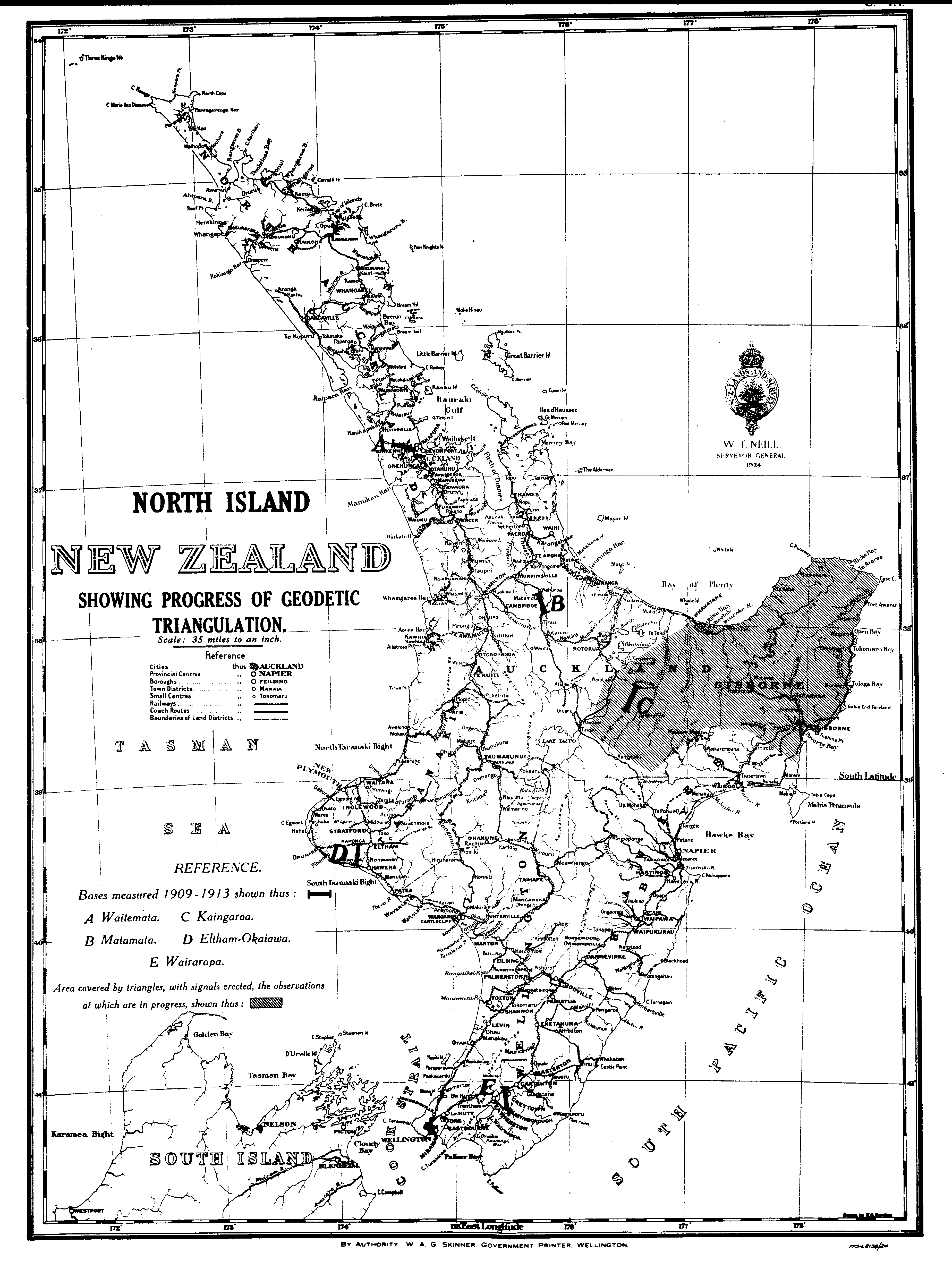 NORTH ISLAND NEW ZEALAND SHOWING PROGRESS OF GEODETIC TRIANGULATION.