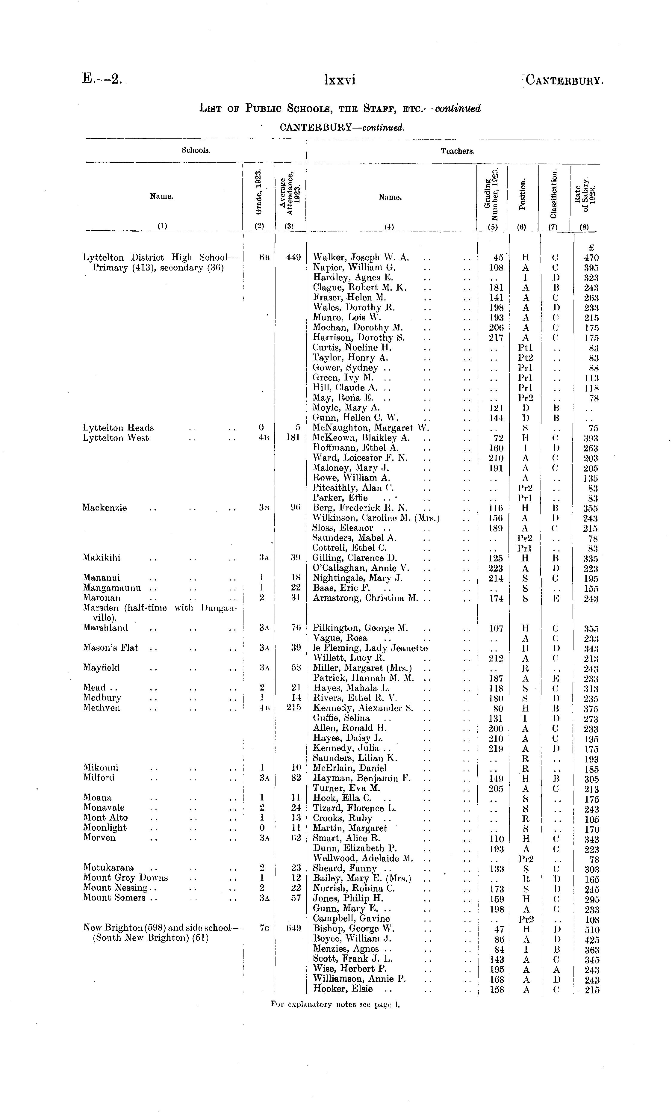 Schools. Teachers. Name. CO 01 OS rH 01 TO 2 o (2) ,8 bud . ert co ,,-dd % doi Hz" H Name. (4) CO Ol t,r<=i rj TJ FH + *> o| 8 to . (_> (<__ o a £ o (7) _|co III © (§)_, (D_ _.< 3 1_ Lyttelton District High School — Primary (413), seconelary (30) On 149 Walker, Joseph W. A. Napier, William G. 11 ardley, Agnes E. Clague, Robort M. K. Eraser, Helen M. Wales, Dorothy B. Monro, Lois W. Mochan, Dorothy M. Harrison, Dorothy S. Curtis, Noeline II. ... Taylor, Henry A. Gower, Sydney Green, Ivy M. .. Hill, Claude A. .. May, Roria E. Moyle, Mary A. Gunn, Hellen C. W. McNaughton, Margaret W. McKeown, Blaikley A. Hoffmann, Ethel A. Ward, Leicester F. N. Malonoy, Mary J. Rowe, William A. Pitcaithly, Alan C. Parker, Erne • • " Berg, Frederick R. N. Wilkinson, Caroline M. (Mrs.) Sloss, Eleanor Saunders, Mabol A. Cottrell, Ethel C. Gilling, (Tarence D. O'Callaghan, Annie V . Nightingale, Mary J. Baas, Eric F. Armstrong, Christina M. .. 45 H 108 A I 181 A ..141 A 198 A 193 A 206 A 217 A Ptl Pt2 Prl Prl Prl Pr2 121 D 144 I) S 72 II 160 I ..210 A 191 A A Pr2 Prl 110 H 156 A 189 A Pr2 I'll 125 H 223 A 214 S S 174 S C C I) 15 C I) c c c 1 2 1 1 1 2 15 15 c I) c c I I 15 D c I. I .. B s I E £ 47( 39: 32:24: 26: 23: 2 If 17: 17.' SISI St n: id 7' 7." 39: ; 25J 20.*: 20£ 13£ 8.1 sa 35!i 2-B! 21c It8.1 33:" 22J I9r 15:* 241: £ 470 395 323 243 203 233 215 175 175 83 83 88 113 118 78 i H A I A A A A A A Ptl Pt2 Prl Prl Prl Pr2 I) I) S II I A A A Pr2 Prl H A A i'i-2 Prl fl A S S s c c D 15 c I) c c (.' Lyttelton Heads Lyttelton West 0 4b B B Mackenzie 3 ii 5 181 90 C I) c c 15 I) c 75 393 253 203 205 135 83 83 355 243 215 78 83 335 223 195 155 243 Makikihi 3,\ 39 B I) c Manama Mangaiiiauuu .. . . Maronan .. .. Marsden (half-time with Dunganville). Marshland .. .. .. 1 1 2 3 A 18 22 31 E Mason's Flat .. 3 a 70 39 Pilkington, George M. Vague, Rosa le Fleming, Laely Jeauette Willett, Lucy R. Miller, Margaret (Mrs.) . . Patrick, Hannah M. M. Hayes, Mahala L. Rivers, Ethel R. V. Kennedy, Alexander S. .. Guffie, Selina Allen, Ronald H. Hayes, Daisy L. Kenneely, Julia Saunders, Lilian K, McErlain, Daniel Hayman, Benjamin E. Turner, Eva M. Hock, Ella ('. .. 'lizard, Florence L, Crooks, Ruby Martin, Margaret Smart, Alice R. Dunn, Elizabeth P. Wellwood, Adelaide M. Sheard, Fanny Bailey, Mary 10. (Mrs.) Norrisb, Robina C. Jones, Philip H. Gunn, Mary E. .. Campbell, Gavine Bishop, George W. Boyce, William J. Menzies, Agnes Scott, Frank J. L. Wise, Herbert P. Williamson, Annie 1'. Hooker, Elsie 107 H A H 212 A R 187 A 118 S 180 S 80 H 131 I 200 A 210 A 219 A R R 149 H 205 A S s R S 110 H 193 A ..I .. Pr2 133 S R 173 S 159 H 198 A Pr2 47 H 80 A 84 1 143 | A 195 A 168 A 158 I A H A H A R A S ■ s II I A A A R R fl A S S R S II A Pr2 S R S II A Pr2 H A I A A A A C (' I) (' K (J I) 15 I) C C D 15 C c c 2 c I) I) c c 2 I) I) B C A D 0 C C I) (' 35: 23: 34: 21: 24: 2.3: 3D 23£ 37£ 27? 23c 19f 17f id; 18( 30f 2D 17! 24; io; 17( 34; 22! 7f so; 161 24:' 291 23; 10! 51( 42i : 36! 34; ! 24! ; 2.4; i 211 355 233 343 213 243 233 313 235 375 273 233 195 175 193 185 305 213 175 243 105 170 343 223 78 303 165 245 295 233 108 510 425 363 345 243 243 215 Maylielel .. .. 3 a 58 E c D B I) C c 1) Mead Medbury .. .. .. i Methven • • .. .. ! 2 1 -In 21 14 215 Mikonui .. . . Milloril I 3a io 82 c .. Moana . . . . Monavale .. .. Mont Alto .. .. Moonlight Morven 1 a 2 i o 3a 11 24 13 II 02 c c Motukarara Mount Grey Downs Mount Nessing Mount Somers 2 1 2 3a 23 12 22 57 c D I) C C New Brighton (598) and siele school— (South New Brighton) (51) 7c: 049 1) I) B C A D 0 'or eacpU uiatory notes sec page i.