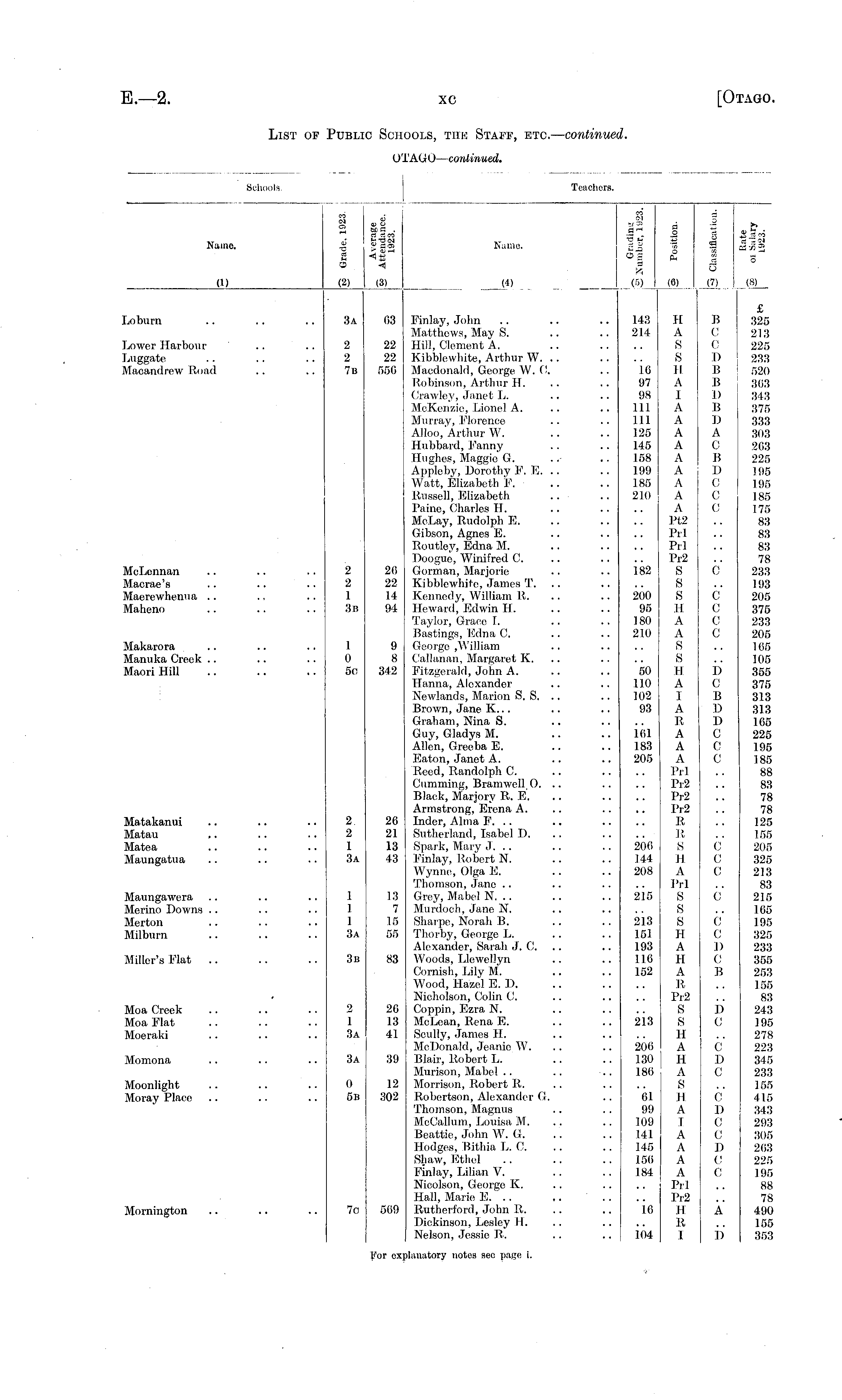 List of Public Schools, the Staff, etc. — continued. OTAGO — continued.