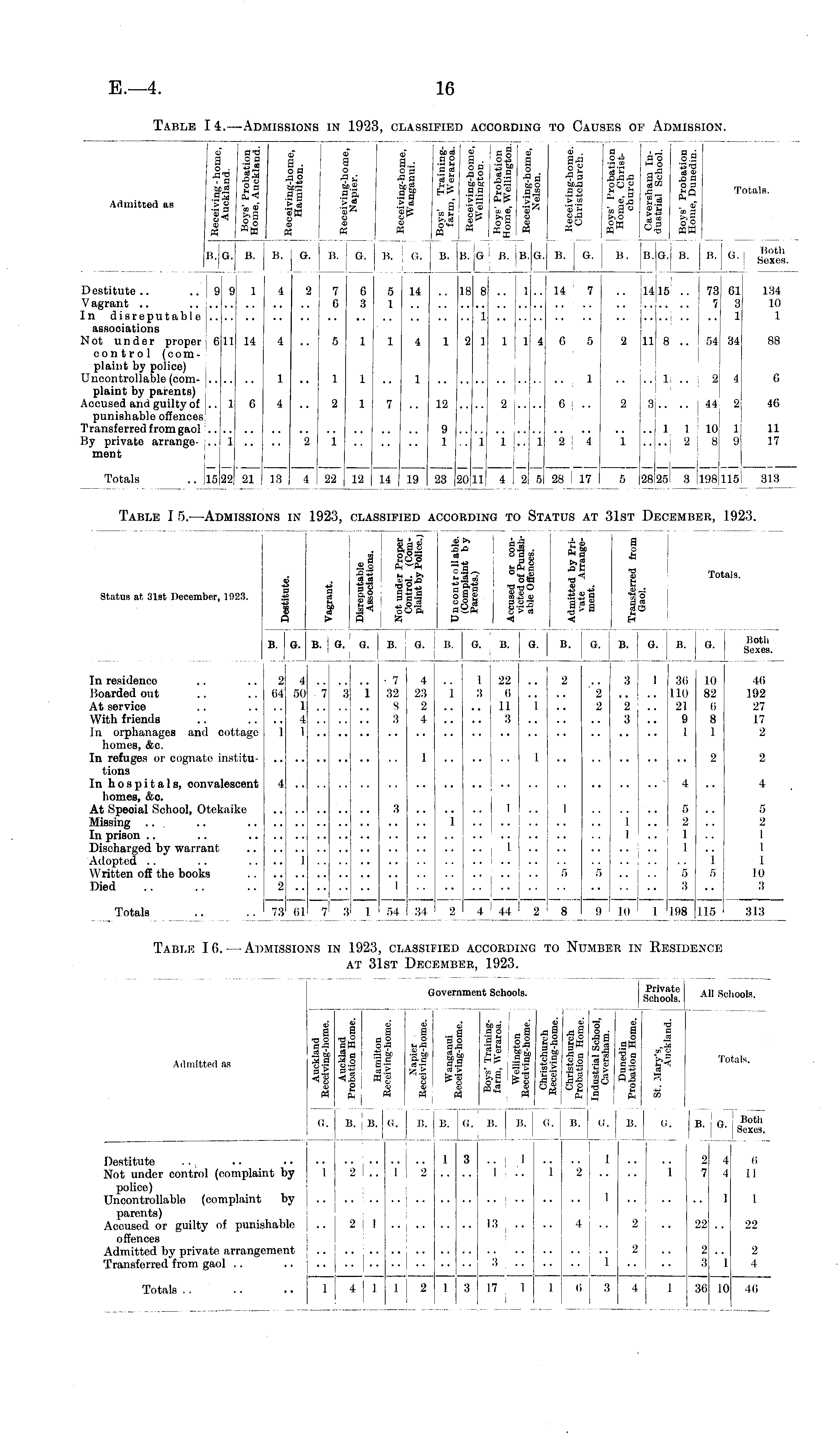 Table I4.—Admissions in 1923, classified according to Causes of Admission.