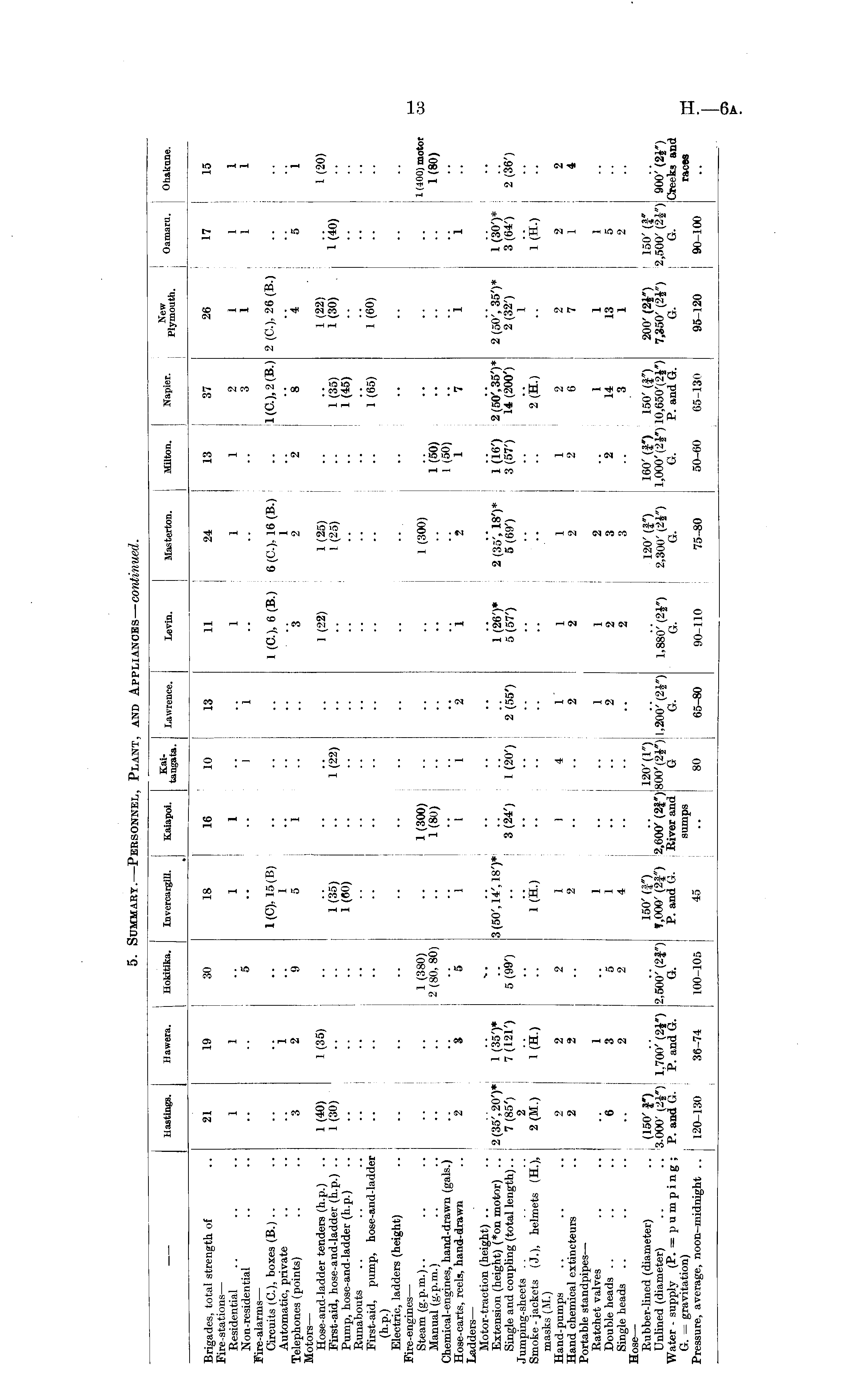 5. Summary.—Personnel, Plant, and Appliances— continued.