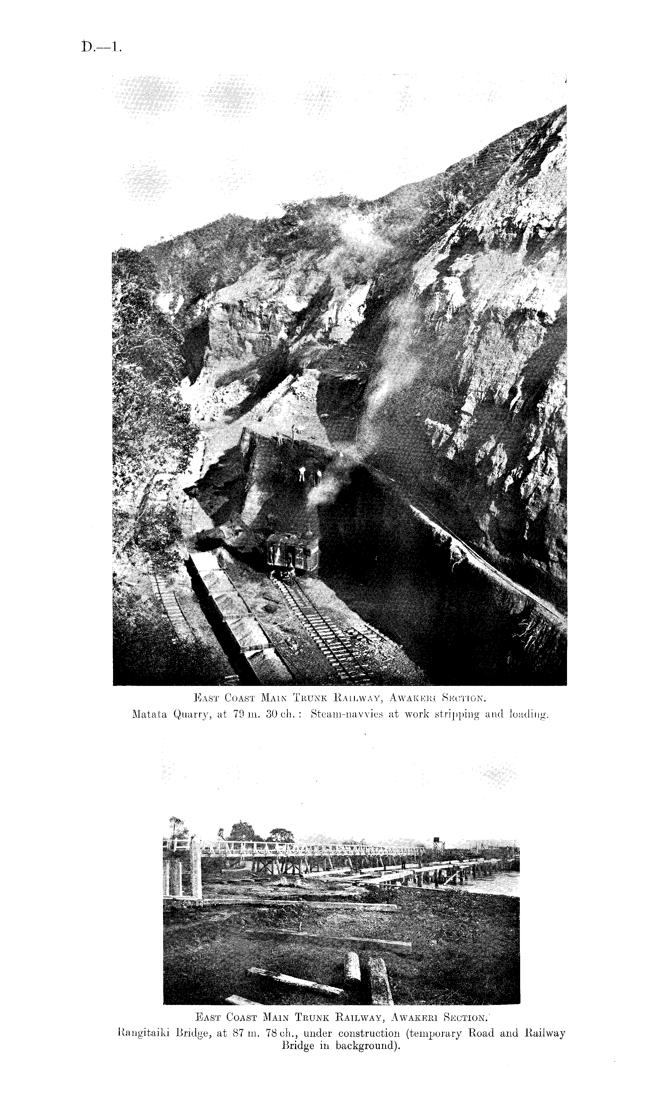 East Coast Main Trunk Railway, Awakeri Section. Matata Quarry, at 79m. 30ch.: Steam-navvies at work stripping and loading.