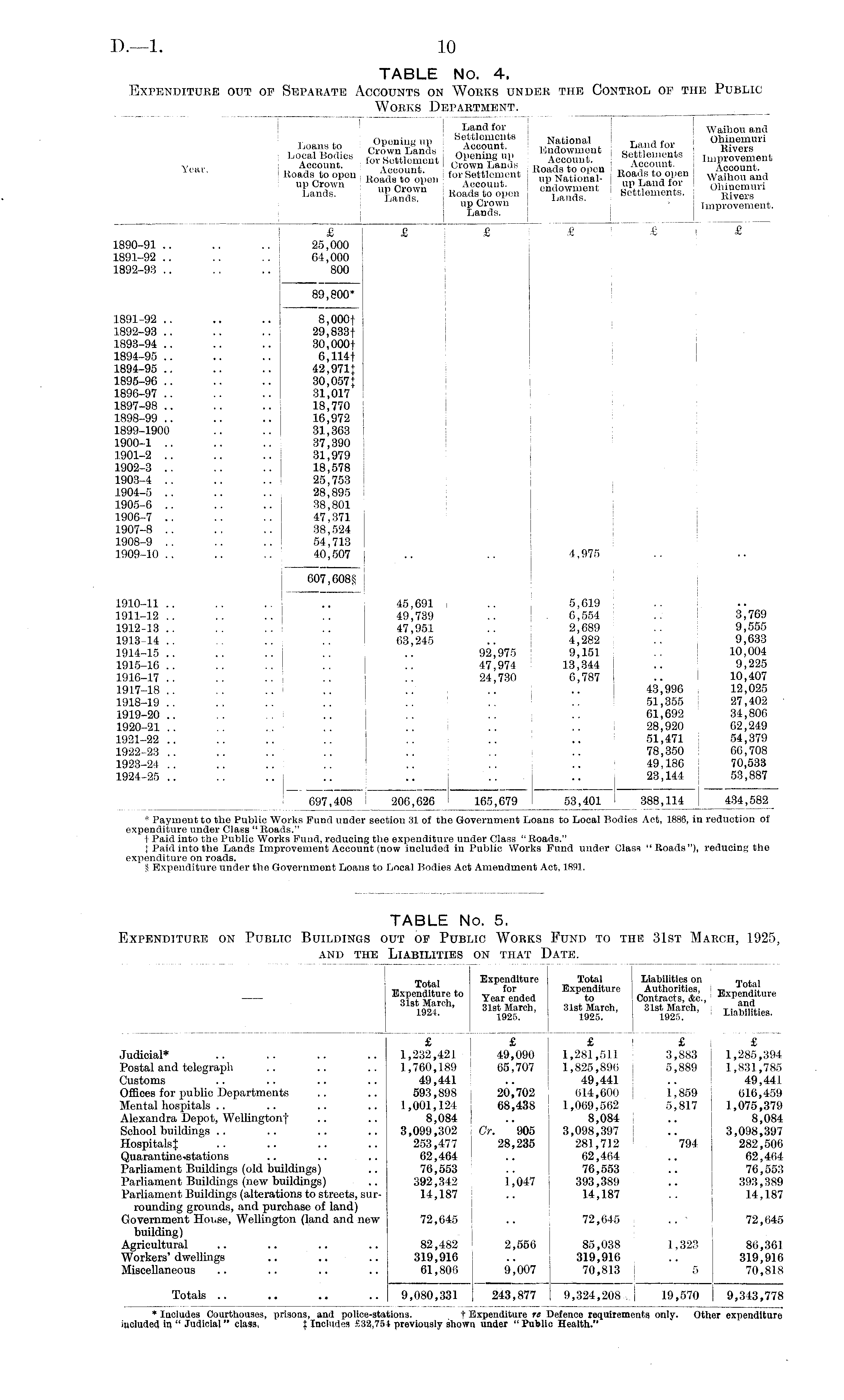 Land for Waibou and Loans to Account' 8 for j Local Bodies f Settlement OpoHHJg U P Account. Settlements improvement VpoAccount. I Grown Lands Rnariq tn Account. Account K °uo Crewn™ Boads *° °l )e11 '"'SS™" up Natkma '" ®°p ifanVfo? 1 " Waihou Lands : up Crown - Improvement. Lands. " i j F~ I i I f I 5 I £ 1890-91 .. .. .. 25,000 i 1891-92 .. .. .. 64,000 1892-93 .. .. .. 800 89,800* 1891-92 .. .. .. 8,000f 1892-93 .. .. .. 29,833f 1893-94 .. .. .. 30,000f 1894-95 .. .. .. 6,114f 1894-95 .. .. .. 42,971} 1895-96 .. .. .. 30,057} 1896-97 .. .. .. 31,017 1897-98 .. .. .. 18,770 1898-99 .. .. .. 16,972 ) 1899-1900 .. .. 31,363 j 1900-1 .. .. .. 37,390 1 1901-2 .. .. ..I 31,979 1902-3 .. .. .. I 18,578 1903-4 .. .. 25,753 1904-5 .. .. .. 28,895 1905-6 .. .. .. 38,801 I 1906-7 .. .. .. 47,371 1907-8 .. .. .. 38,524 1908-9 .. .. .. 54,713 1909-10 .. .. .. j 40,507 .. .. 4,975 607,608§ 1910-11 .. .. .. ! .. 45,691 i .. | 5,619 .. i 1911-12 .. .. .. .. 49,739 .. . 6,554 .. 1 3,769 1912-13.. .. .. .. 47,951 .. 2,689 .. 9,555 1913-14 .. .. .. 63,245 .. ! 4,282 .. 9,633 1914-15.. .. .. j .. .. 92,975 1 9,151 10,004 1915-16.. .. .. .. .. 47,974 13,344 ; .. 9,225 1916-17 .. .. ..| .. .. 24,730 6,787 .. 10,407 1917-18 .. .. .. .. .. .. .. i 43,996 12,025 1918-19 .. .. .. .. 51,355 27,402 1919-20.. .. .. .. .. .. 61,692 34,806 1920-21 .. .. .. .. .. .. .. 28,920 62,249 1921-22 .. .. .. .. .. .. .. 51,471 54,379 1922-23 .. .. .. .. .. .. .. 78,350 66,708 1923-24.. .. .. .. .. .. .. 49,186 70,533 1924-25 .. .. .. i .. .. .. I .. 23,144 53,887 697,408 j 206,626 165,679 I 53,401 ' 388,114 434,582 * Payment to the Public Works Fund under section 31 of the Government Loans to Local Bodies Act, 1886, in reduction of expenditure under Class "Roads." t Paid into the Public Works Fund, reducing the expenditure under Class " Roads." J Paid into the Lands Improvement Account (now included in Public Works Fund under Class "Roads"), reducing the expenditure on roads. § Expenditure under the Government Loans to Local Bodies Act Amendment Act, 1891.