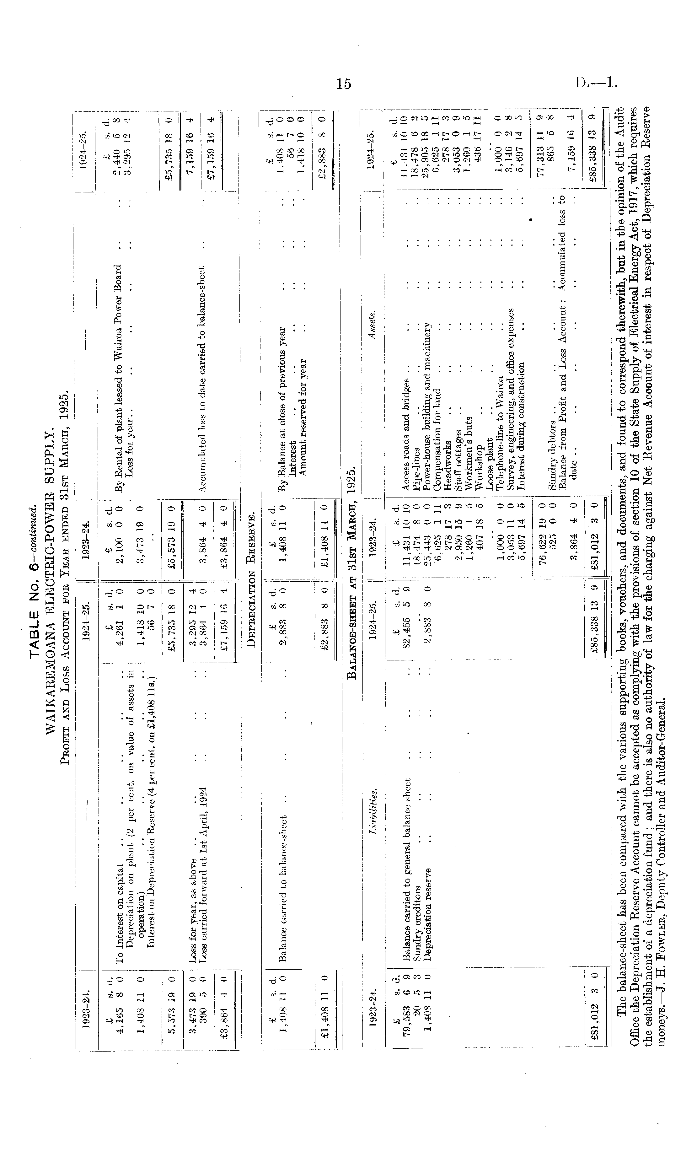 TABLE No. 6— continued. WAIK AREMOAN A ELECTRIC-POWER SUPPLY. Profit and Loss Account for Year ended 31st March, 1925.