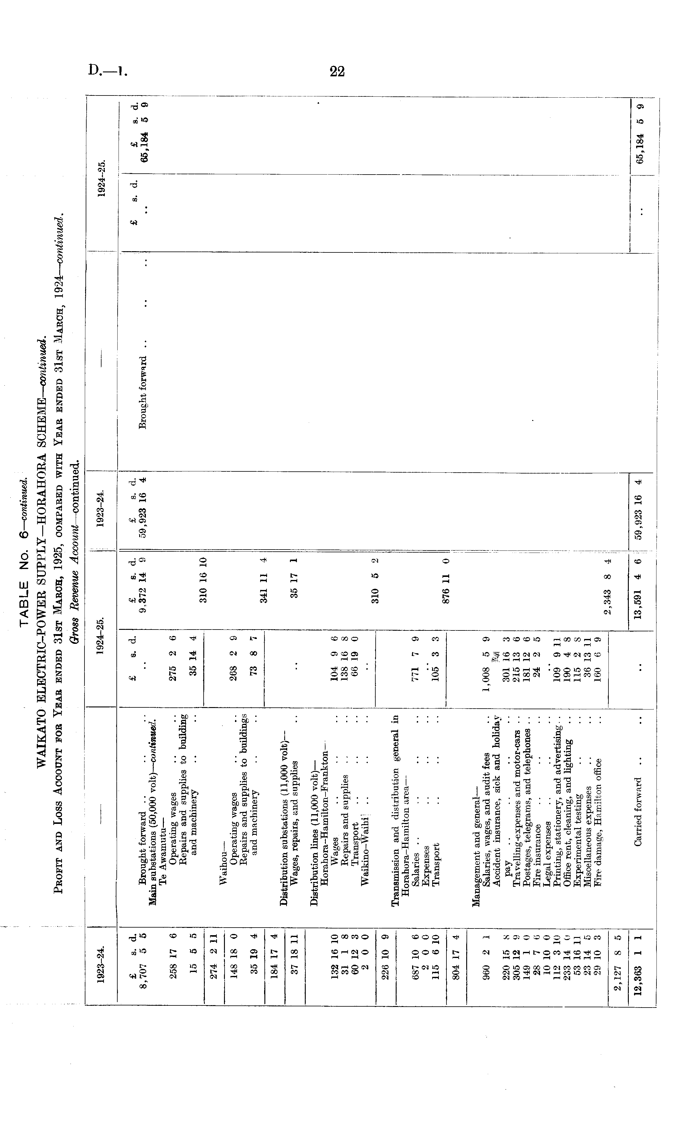 TABLE No. 6— continued. WAIKATO ELECTRIC-POWER SUPPLY—HORAHORA SCHEME— continued. Profit and Loss Account for Year ended 31st March, 1925, compared with Year ended 31st March, 1924— continued. Gross Revenue Account— continued.