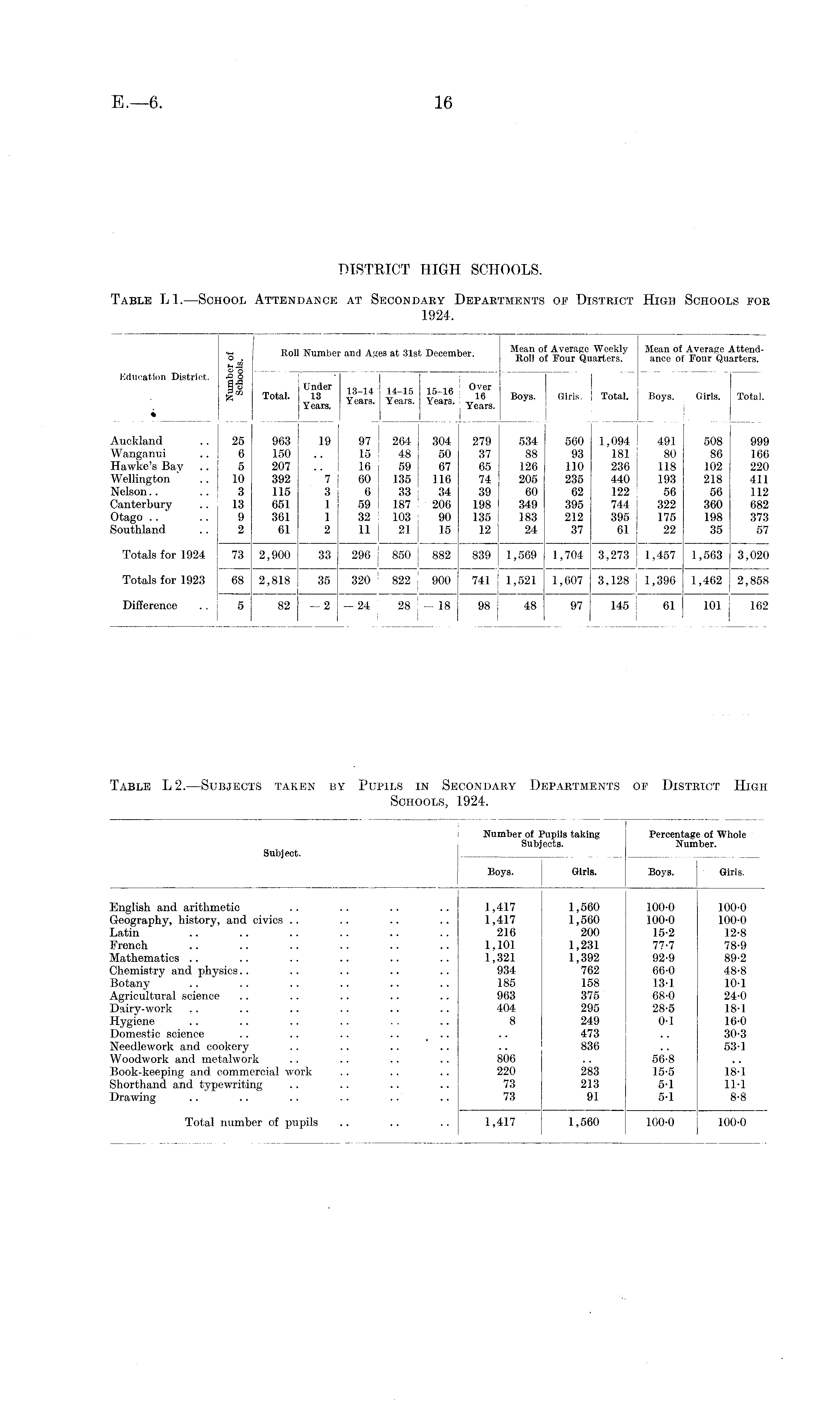 Table L2. —Subjects taken by Pupils in Secondary Departments of District High Schools, 1924.