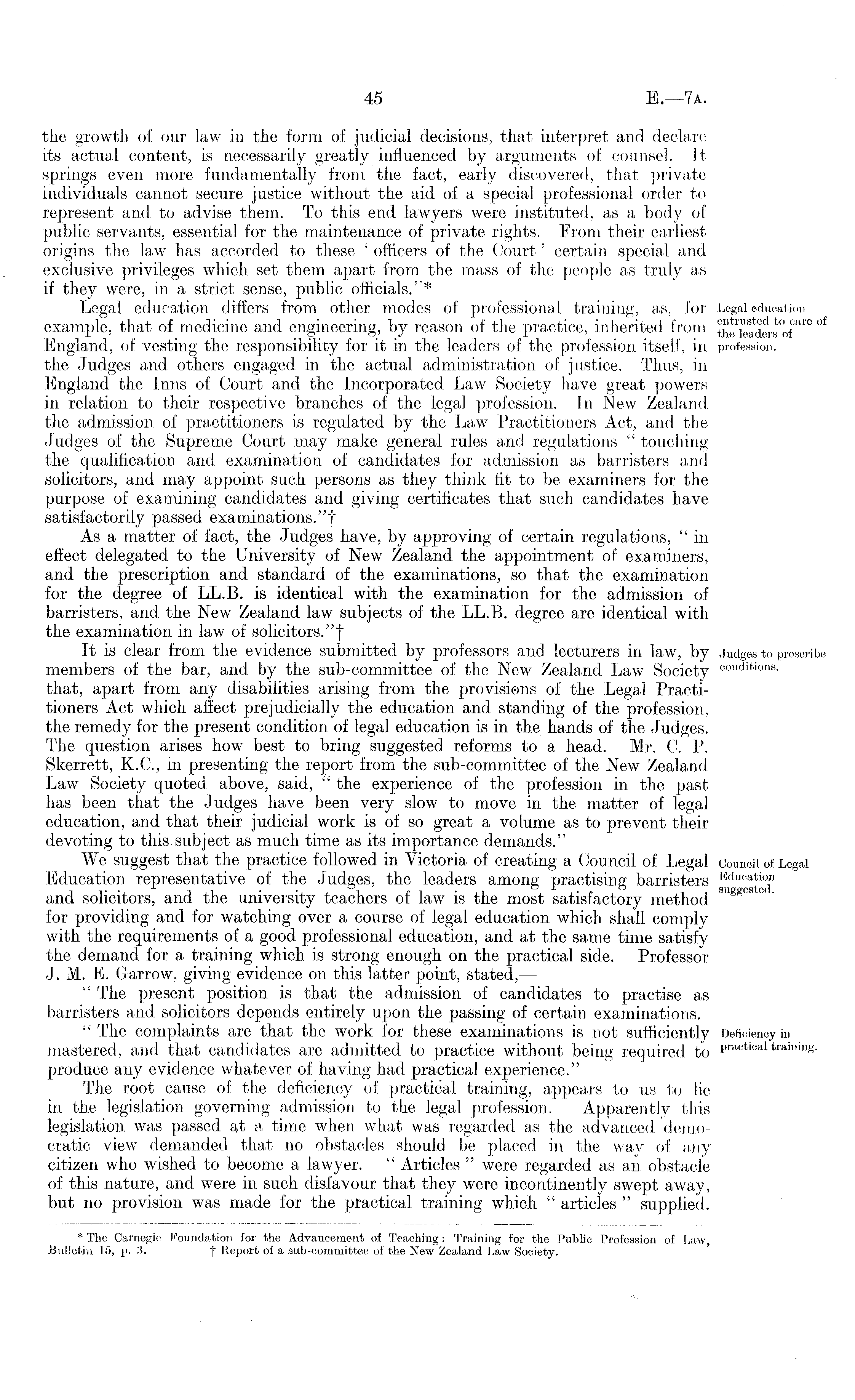 * The Carnegie Foundation for the Advancement of Teaching: Training for the Public Profession of Law, Bulletin 15, p. 3. | Report of a sub-committee of the New Zealand Law Society.