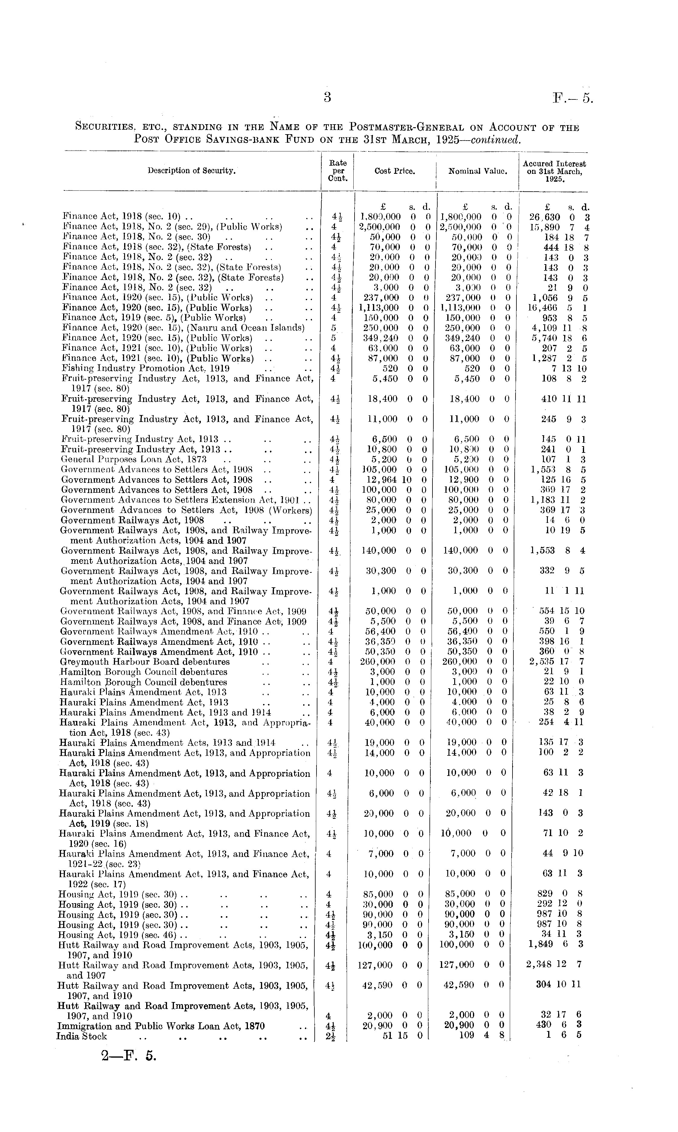 Securities, etc., standing in the Name of the Postmaster-General on Account of the Post Office Savings-bank Fund on the 31st March, 1925 —continued.