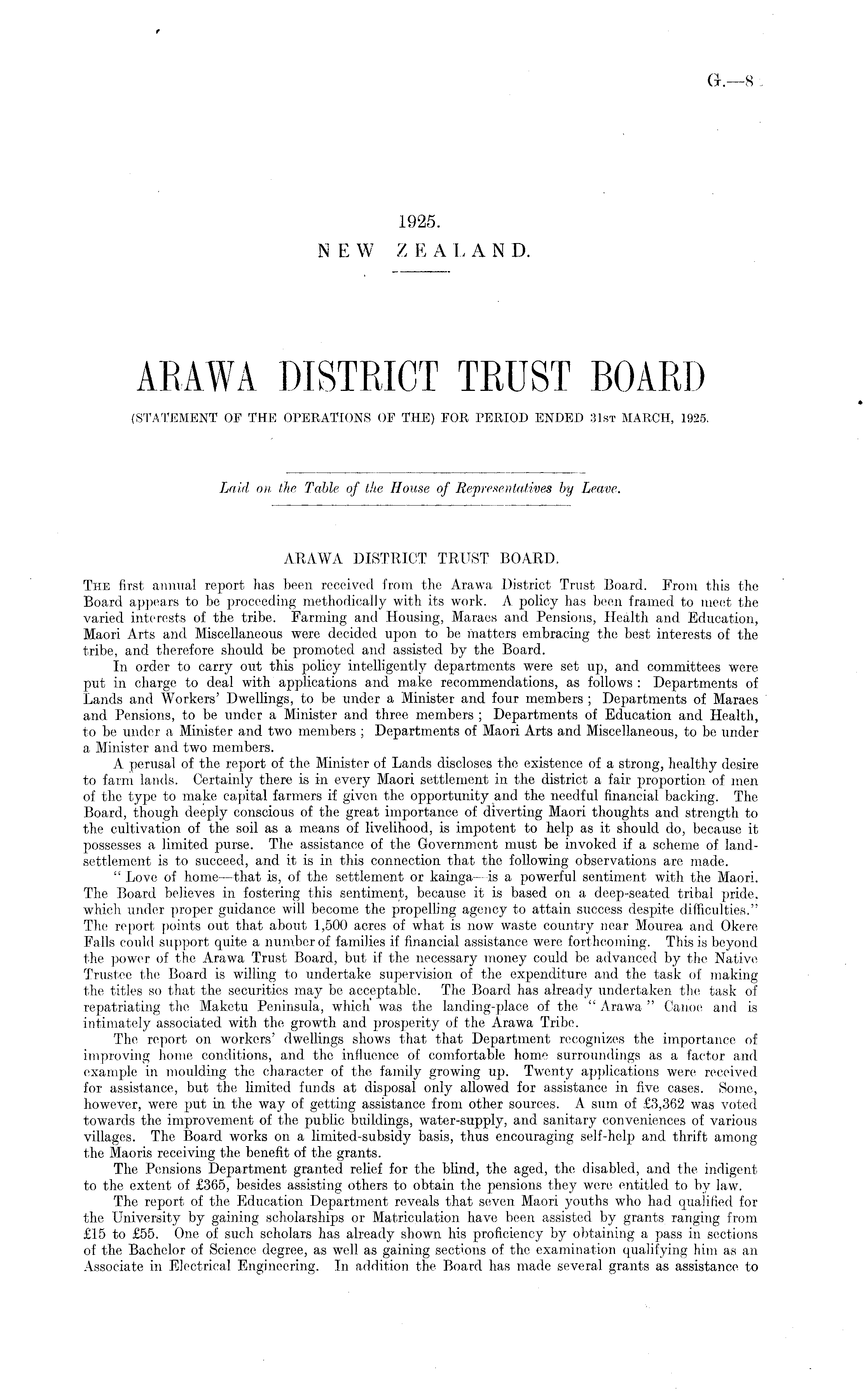 ARAWA DISTRICT TRUST BOARD (STATEMENT OF THE OPERATIONS OF THE) FOR PERIOD ENDED 31st MARCH, 1925.