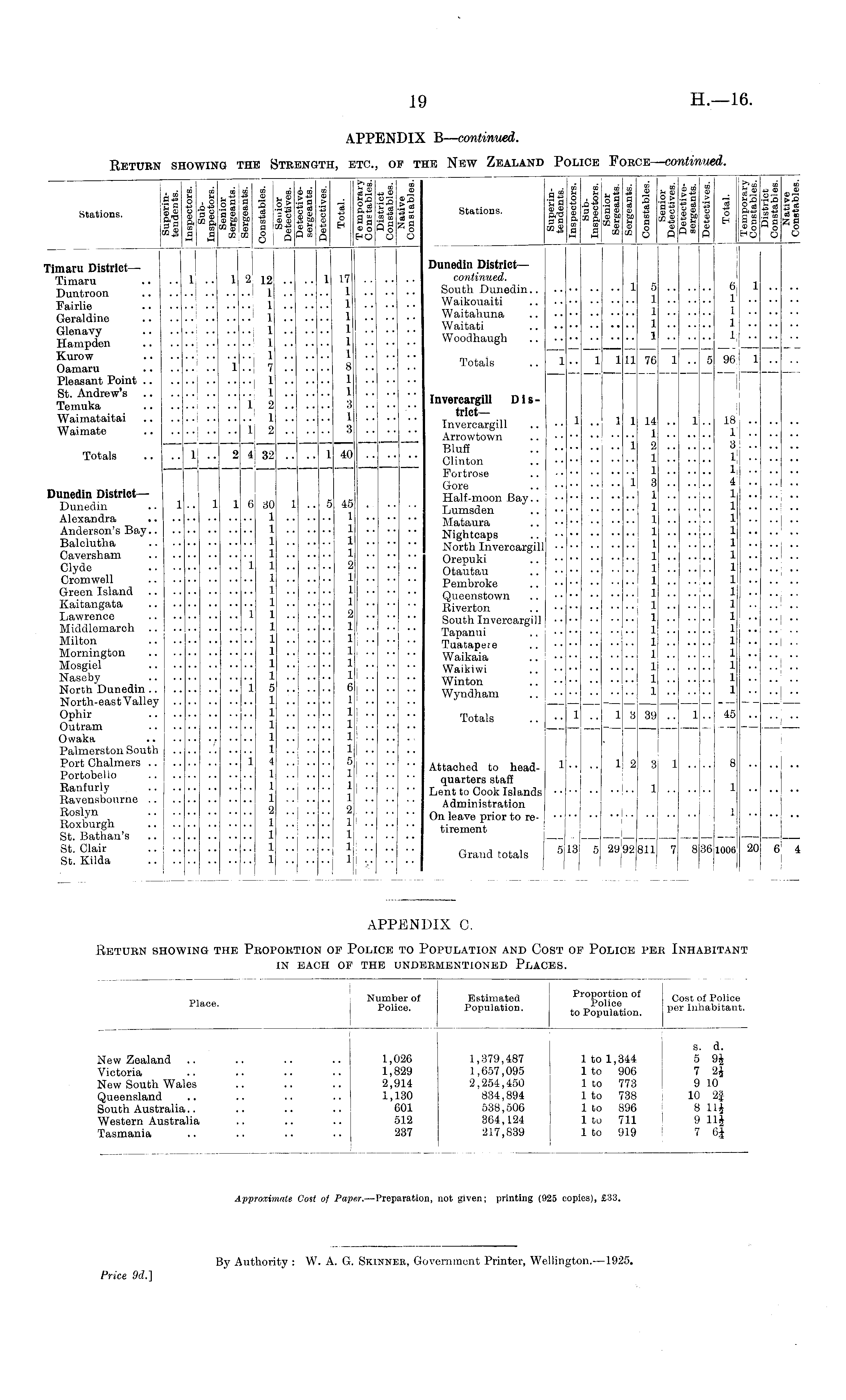 APPENDIX B —continued. Return showing the Strength, etc., of the New Zealand Police Force—continued.