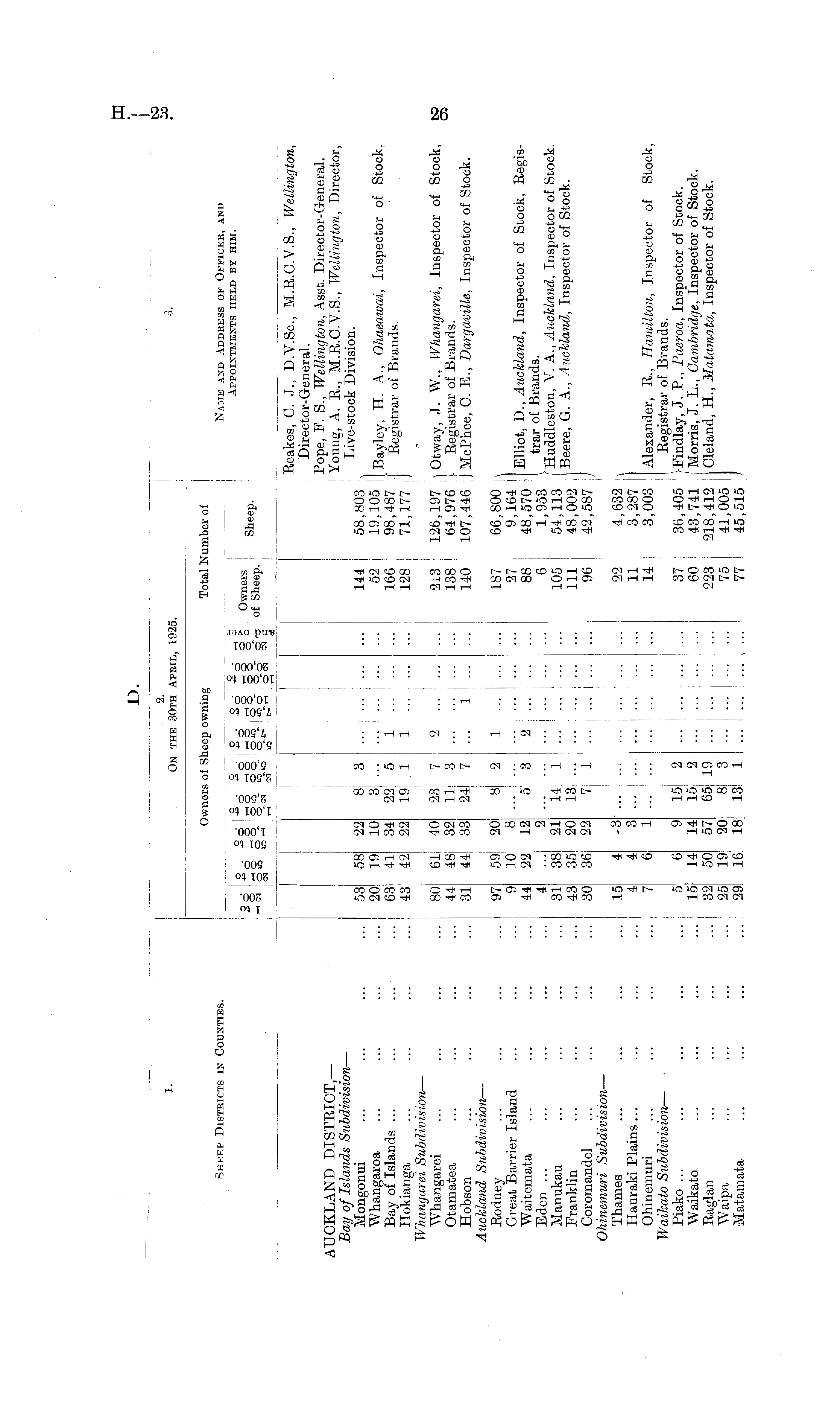 1 2 - o 1 - On the 30th April, 1925. Owners of Sheep owning Total Number of Sheep Districts in Codnties. Name and Address op Officer, and b -15 • ! S' • IS ■ in 8 I Appointments held by him. o /—, -4-3 • ■*" 3 O o o _i r~\ o Ownpyi o O O T- 1 O 'H O 1 TH o tH O ° W WlltJIb QL. fln _o t-io oio o o oo©°- §q - n f cv,p pr v oneep. s*° s- §*-- 2-s |-§ s| pReakes, C. J., D.Y.Sc., M.R.C.V.S., Wellington, Director-General. Pope, F. 8., Wellington, Asst. Director-General. AUCKLAND DlblKiCil, Young, A. E., M.B.C.V.S., Wellington, Director, Bay of Islands Subdivision— Live-stock Division. Mongonui ... ... ... ... o3 58 22 8 3 ... 144 58,803 \ Whangaroa ... ... ... ... 20 19 10 3 I ... 52 19,105 I Bayley, H. A., Ohaeawai, Inspector of Stock, Bay of Islands ... 63 41 34 22 5 1 166 98,487 Registrar of Brands. Hokianga ... ... ... ... 43 42 22 19 1 1 ; ... 128 71,177 j Whangarei Subdivision — Whangarei ... ... ... ... 80 61 40 23 7 2 213 126,197 \ Otway, J. W., Whangarei, Inspector of Stock, Otamatea ... ... ... ... 44 48 32 11 3 ... 138 64,976 I Registrar of Brands. Hobson ... ... ... ... 31 44 33 24 7 ... 1 1 I 140 107,446 j McPhee, C. E., Dargaville, Inspector of Stock. Auckland Subdivision — Eodney ... ... ... ... 97 59 20 8 2 1 187 j 66,800 Great Barrier Island ... ... ... 9 10 8 I 27 9,164 ~ , T l c 0l , -n Waitemata 44 22 12 5 3 2 88 48,570 E1 lot ' Inspector of Stock, EegisBden ... ... ... ... ... 4 ... 2 6 1,953 L t v a a z.7 j t + t a* i Manukau 31 38 21 14 1 105 54, H3 Huddleston, V. A., Auckland, Inspector of Stock. Franklin 43 35 20 13 ... Ill 48,002 Beere ' G. A., Auckland, Inspector of Stock. Coromandel ... ... ... ... 30 36 22 7 1 96 42,587 ) Ohinemuri Subdivision — Thames ... ... ... ... 15 4 -3 ... j 22 4,632 \ Hauraki Plains... ... ... ... 4 4 3 11 3,287 Ohinemuri ... ... ... ... 7 6 1 14 3,003 Alexander, B., Hamilton, Inspector of Stock, Waikato Subdivision — I Begistrar of Brands. Piako ... ... ... ... ... 5 6 9 15 2 37 36,405 J. P., Paeroa, Inspector of Stock. Waikato ... ... ... ... 15 14 14 15 2 60 43,741 Morris, J. L., Cambridge, Inspector of Stock. Eaglan ... ... ... ... 32 50 57 65 19 223 218,412 Cleland, H., Mataviata, Inspector of Stock. Waipa ... ... ... ... 25 19 20 8 3 75 ! 41,005 •Matamata ... ... ... ... 29 16 18 13 1 77 45,515 .