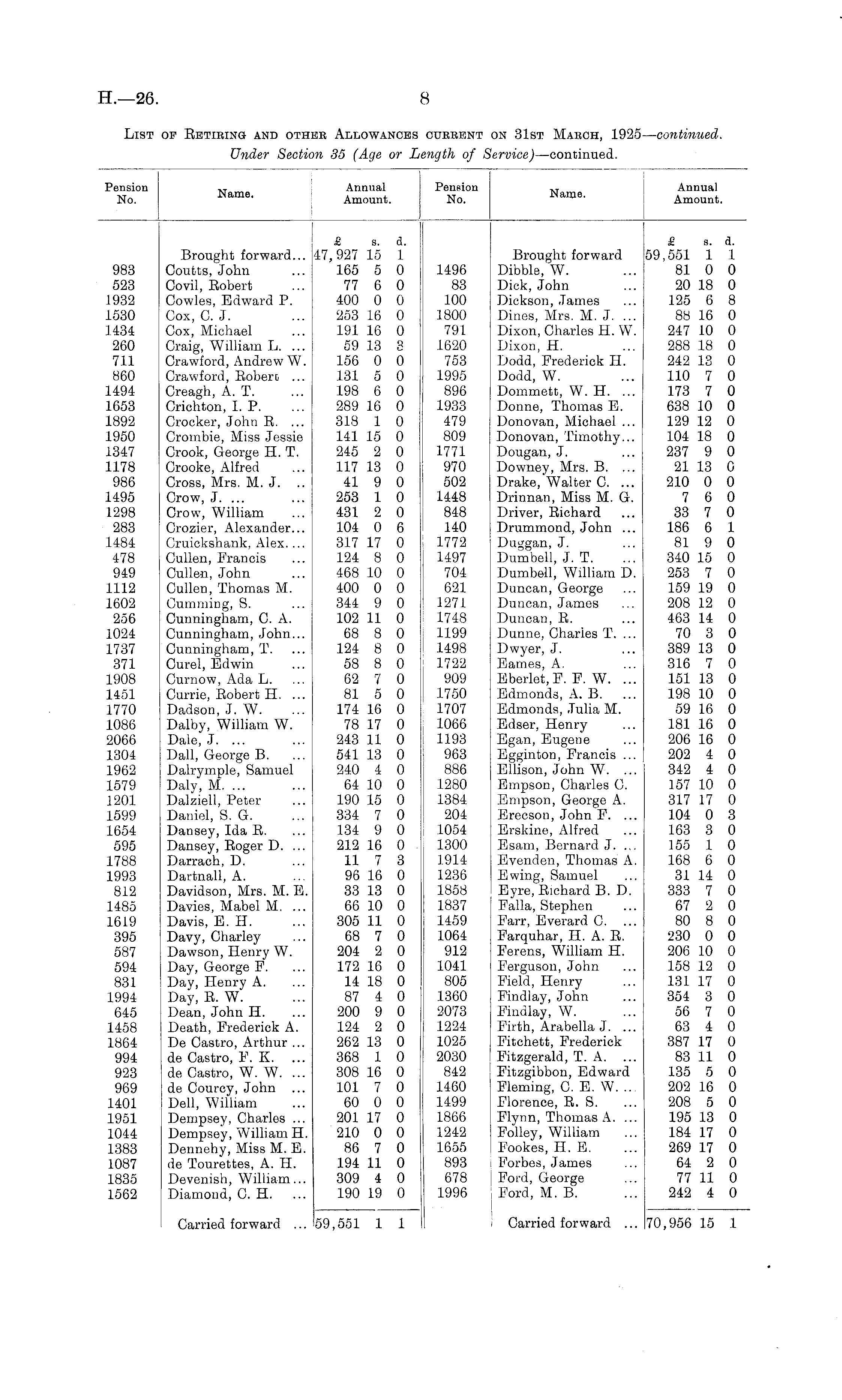 List of Retiring and other Allowances current on 31st March, 1925—continued. Under Section 35 (Age or Length of Service) —continued.