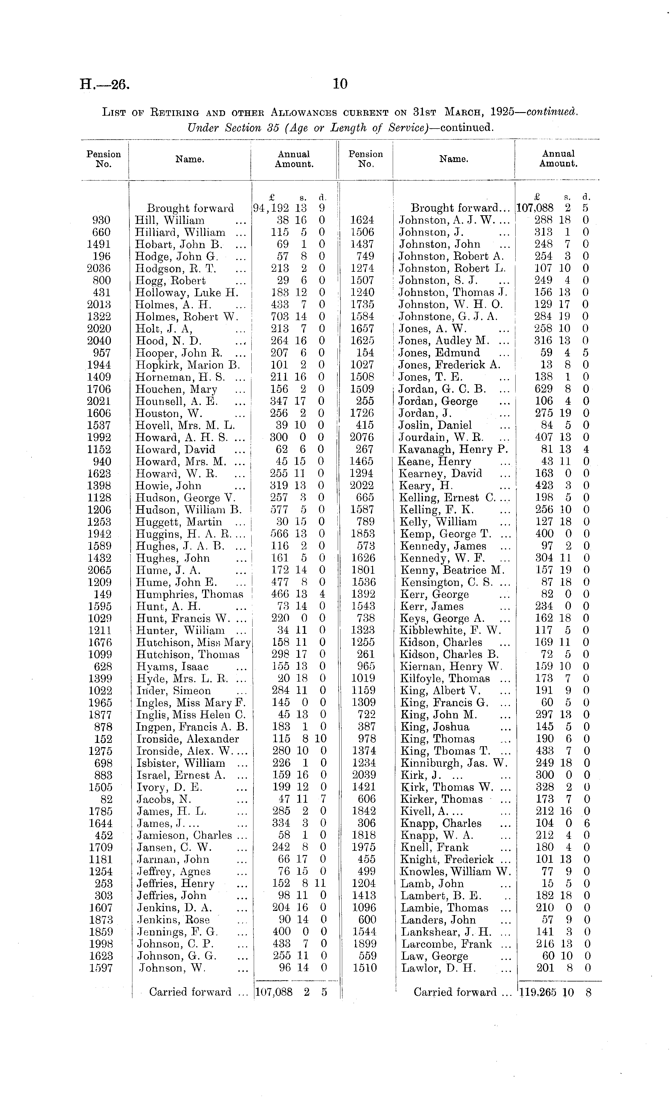 List of Retiring and other Allowances current on 31st March, 1925—continued. Under Section 35 (Age or Length of Service) —continued.