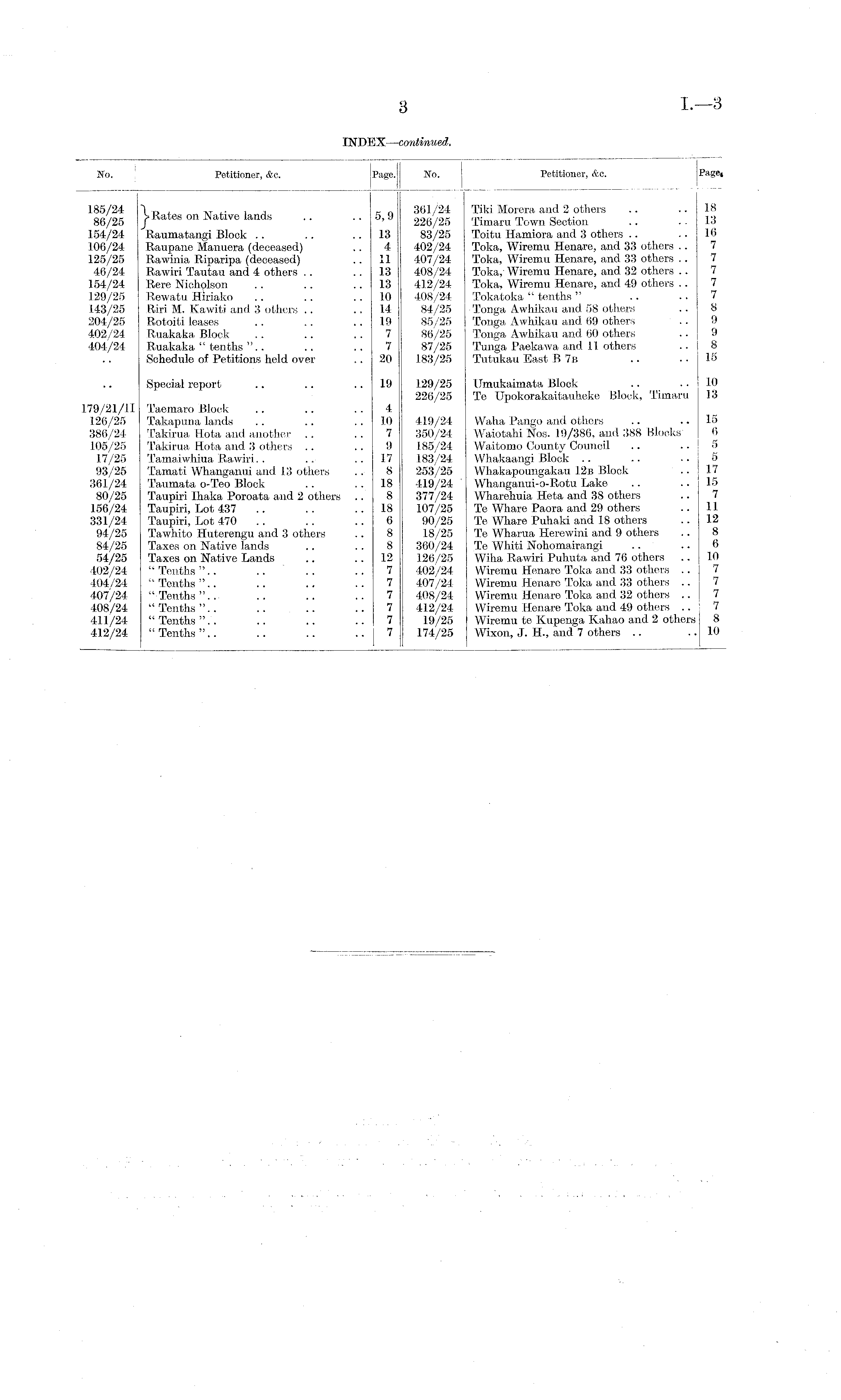 No. Petitioner, &c. Page. No. j Petitioner, &c. Jpage» 185/24 \ o , M , , r n 361/24 Tiki Morera and 2 others .. .. 18 86/25 / Rates on Native lands .. ..5,9 Timaru Town Section .. ..13 154/24 Raumatangi Block .. .. ..13 83/25 Toitu Hamiora and 3 others .. ..16 106/24 Raupane Manuera (deceased) .. 4 402/24 Toka, Wiremu Henare, and 33 others .. 7 125/25 Rawinia Riparipa (deceased) .. 11 407/24 Toka, Wiremu Henare, and 33 others .. 7 46/24 Rawiri Tautau and 4 others .. 13 408/24 Toka, Wiremu Henare, and 32 others .. 7 154/24 Rere Nicholson .. .. 13 412/24 Toka, Wiremu Henare, and 49 others .. 7 129/25 Rewatu Hiriako .. .. ..10 408/24 Tokatoka " tenths" .. •• 7 143/25 Riri M. Kawiti and 3 others .. 14 84/25 Tonga Awhikau and 58 others .. H 204/25 Rotoili leases .. .. 19 85/25 Tonga Awhikau and 69 others .. 9 402/24 Ruakaka Block .. .. .. 7 86/25 Tonga Awhikau and 60 others .. 9 404/24 Ruakaka " tenths. .. .. 7 87/25 Tunga Paebawa and 11 others .. 8 Schedule of Petitions held over .. 20 183/25 Tutukau East B 7b .. 15 Special report .. .. 19 1.29/25 Umukaimata Block .. 10 226/25 Te Upokorakaitauheke Block, Timaru 13 179/21/H Taemaro Block .. .. . . 4 126/25 Takapuna lands .. .. 10 419/24 Waha Pango and others .. 15 386/24 Takirua Hota and another .. .. 7 350/24 Waiotahi Nos. 19/386, and 388 Blocks 6 105/25 Takirua Hota and 3 others .. .. 9 185/24 Waitomo County Council .. . • 5 17/25 Tamaiwhiua Rawiri. . .. ..17 183/24 Whakaangi Block .. .. 5 93/25 Tamati Whanganui and 13 others .. 8 253/25 Whakapoungakau 12b Block .. 17 361/24 Taumata o-Teo Block .. 18 419/24 Whanganui-o-Rotu Lake .. 15 80/25 Taupiri Ihaka Poroata and 2 others .. 8 377/24 Wharehuia Heta and 38 others .. 7 156/24 Taupiri, Lot 437 .. .. ..18 107/25 Te Whare Paora and 29 others .. 11 331/24 Taupiri, Lot 470 .. .. .. 6 90/25 Te Wliare Puhaki and 18 others .. 12 94/25 Tawhito Huterengu and 3 others .. 8 18/25 Te Wharua Herewini and 9 others .. 8 84/25 Taxes on Native lands .. .. 8 360/24 Te Whiti Nohomairangi .. .. 6 54/25 Taxes on Native Lands .. 12 126/25 Wiha Rawiri Puhuta and 76 others .. 10 402/24 "Tenths".. .. .. .. 7 402/24 Wiremu Henare Toka and 33 others .. 7 404/24 "Tenths".. .. .. .. 7 407/24 Wiremu Henare Toka and 33 others .. 7 407/24 "Tenths".. .. .. .. 7 408/24 Wiremu Henare Toka and 32 others .. 7 408/24 "Tenths".. .. .. .. 7 412/24 Wiremu Henare Toka and 49 others .. 7 411/24 "Tenths".. .. .. .. 7 19/25 Wiremu te Kupenga Kahao and 2 others 8 412/24 "Tenths".. .. .. .. 7 174/25 Wixon, J. H., and 7 others .. ..10