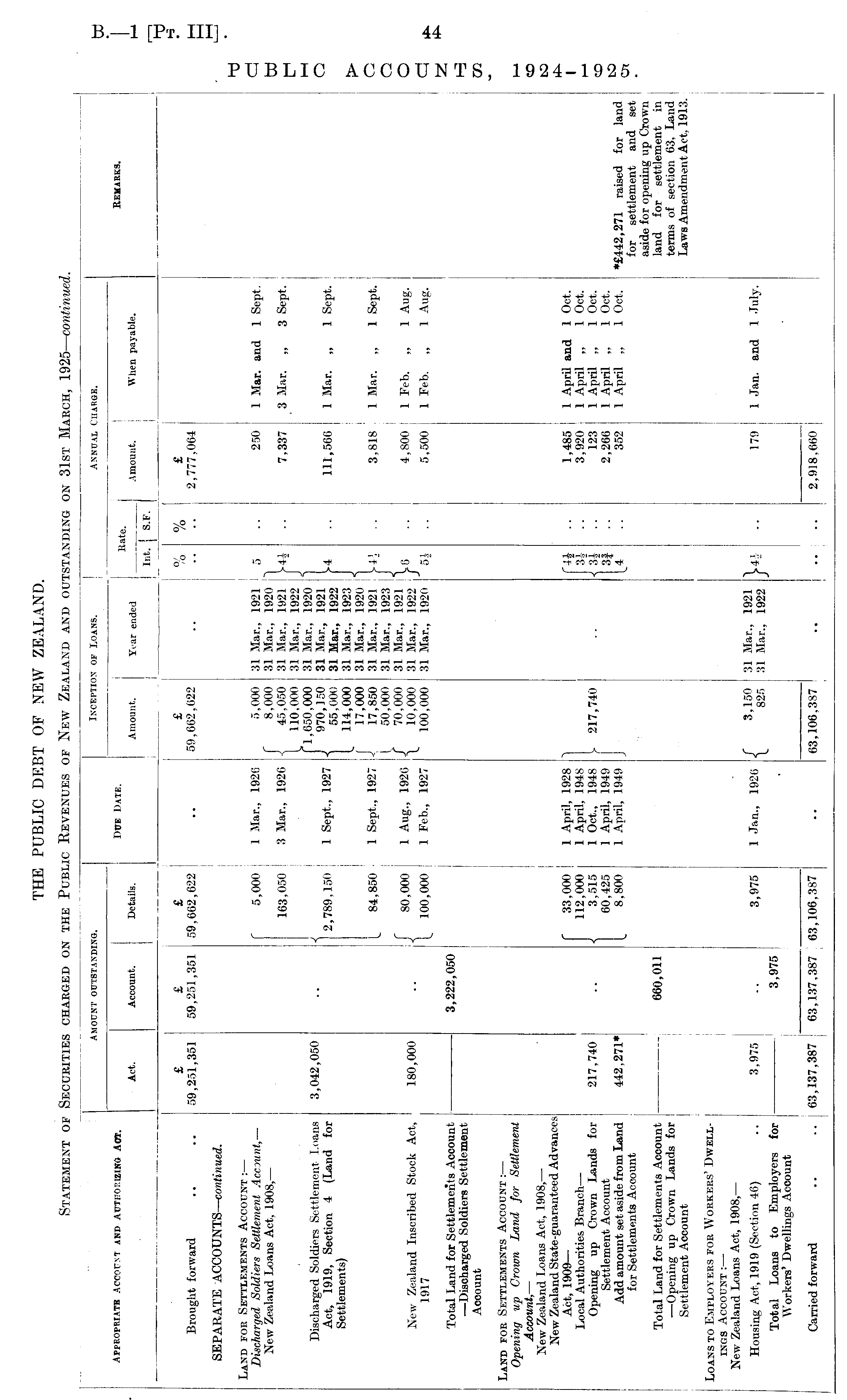 THE PUBLIC DEBT OF NEW ZEALAND. Statement of Securities charged on the Public Revenues of New Zealand and outstanding on 31st March, 1925— continued.