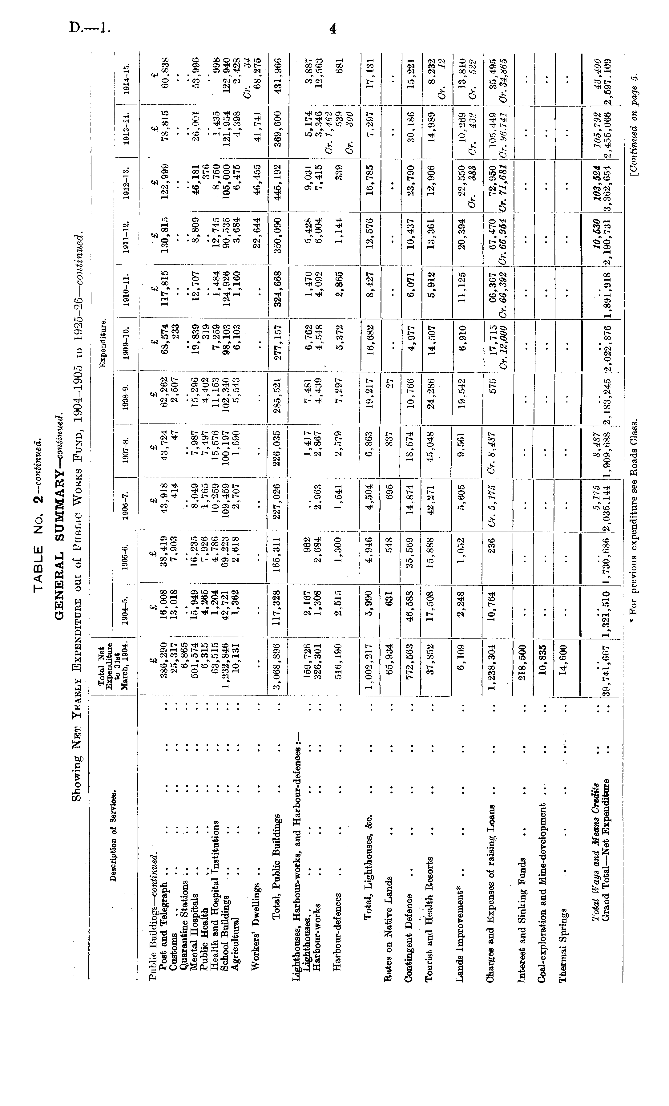 TABLE No. 2— continued. GENERAL SUMMARY— continued. Showing Net Yearly Expenditure out of Public Works Fund, 1904-1905 to 1925-26— continued.