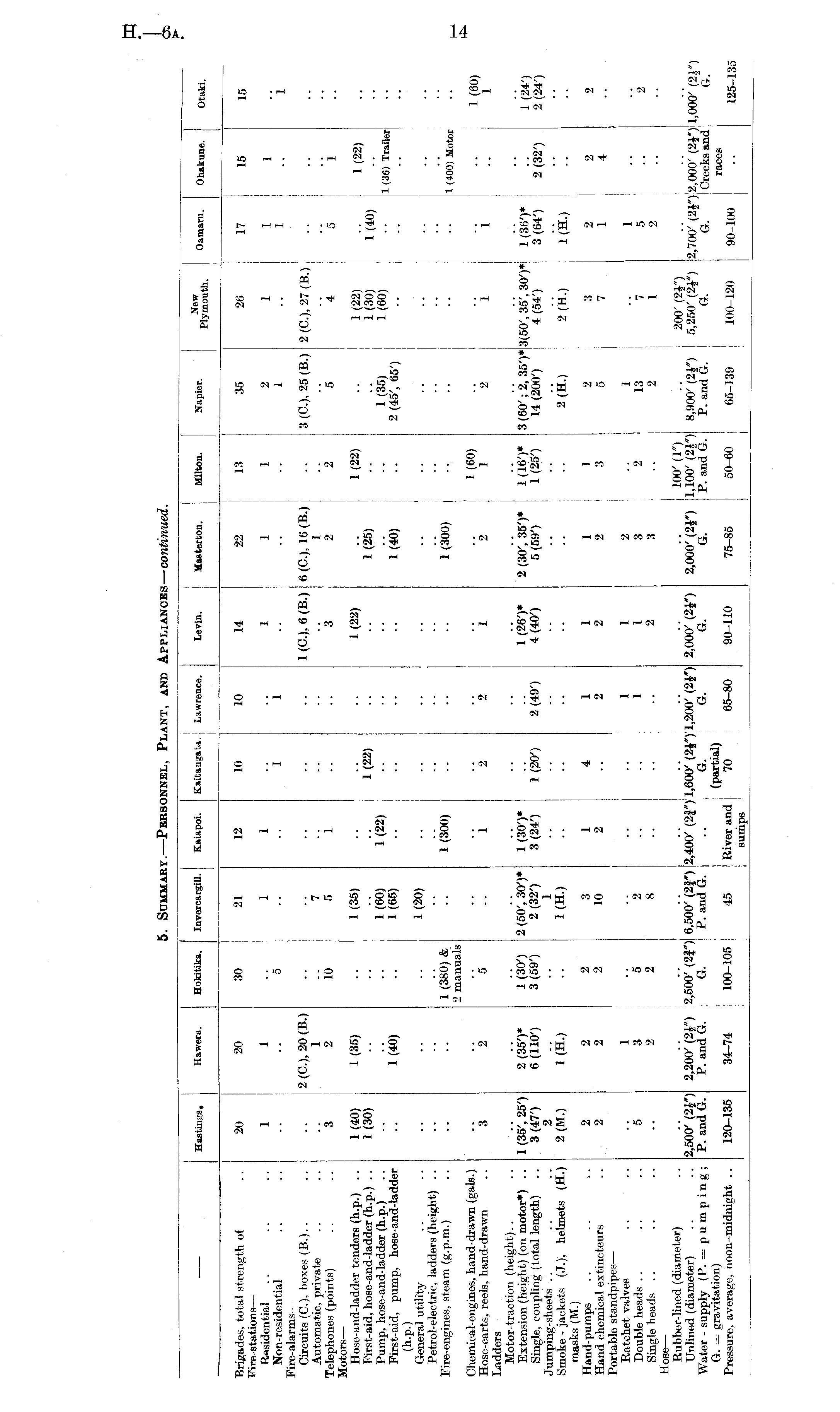 5. Summary.—Personnel, Plant, and Appliances— continued.
