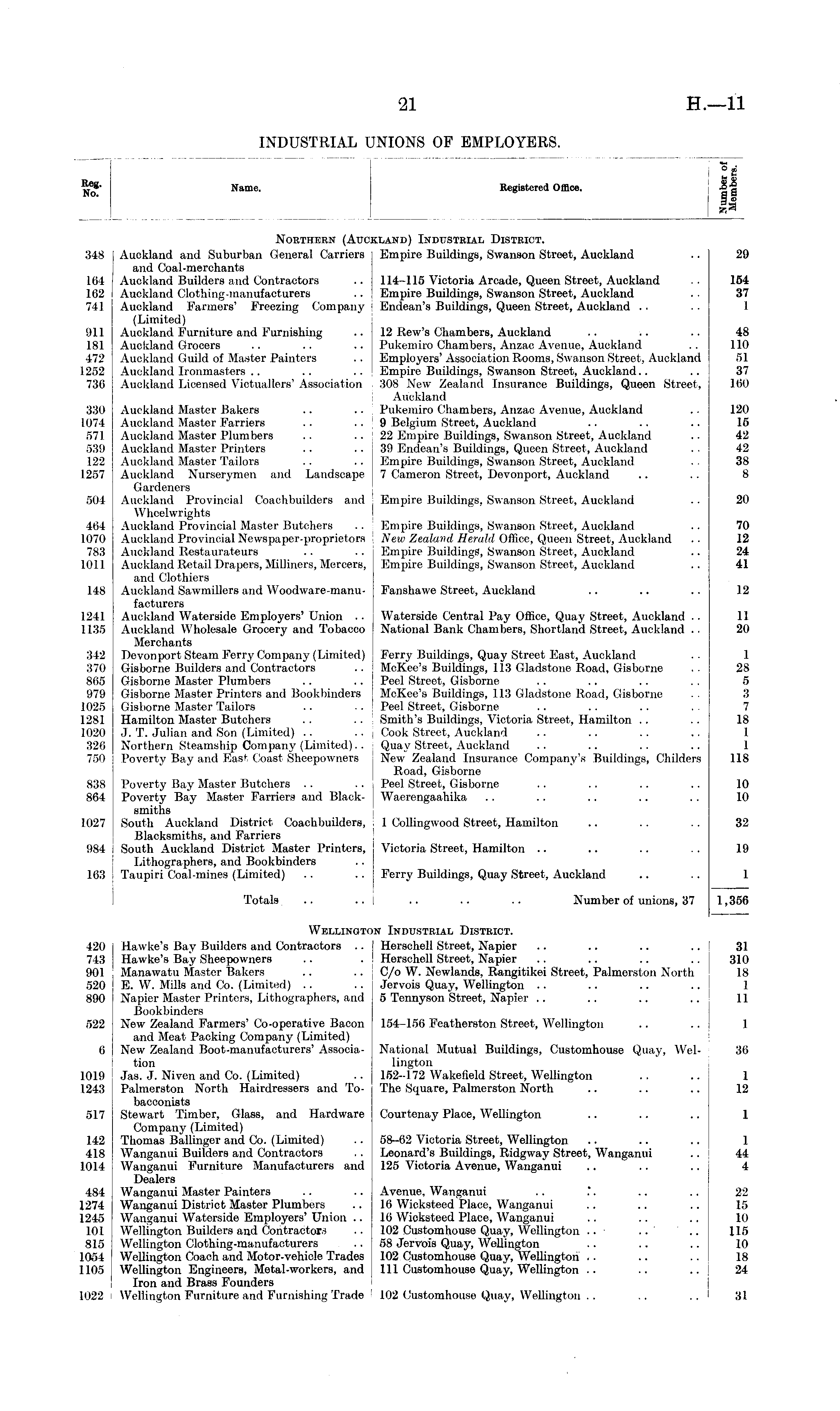 © 05 (- j Name. Registered Office. ! •o|j 1 j ja Northern (Auckland) Industrial District. 348 Auckland and Suburban General Carriers Empire Buildings, Swanson Street, Auckland .. 29 and Coal-merchants 164 Auckland Builders and Contractors .. 114-115 Victoria Arcade, Queen Street, Auckland . . 154 162 Auckland Clothing-manufacturers .. Empire Buildings, Swanson Street, Auckland . . 37 741 Auckland Farmers' Freezing Company Endean's Buildings, Queen Street, Auckland .. . . 1 (Limited) 911 Auckland Furniture and Furnishing .. 12 Rew's Chambers, Auckland .. .. .. 48 181 Auckland Grocers .. .. .. Pukemiro Chambers, Anzac Avenue, Auckland .. 110 472 Auckland Guild of Master Painters .. Employers'Association Rooms, Swanson Street, Auckland 51 1252 Auckland Ironmasters .. .. .. Empire Buildings, Swanson Street, Auckland.. .. 37 736 Auckland Licensed Victuallers' Association 308 New Zealand Insurance Buildings, Queen Street, 160 Auckland 330 Auckland Master Bakers .. .. Pukemiro Chambers, Anzac Avenue, Auckland .. 120 1074 Auckland Master Farriers .. 9 Belgium Street, Auckland .. .. .. 15 571 Auckland Master Plumbers .. 22 Empire Buildings, Swanson Street, Auckland . • 42 539 Auckland Master Printers .. 39 Endean's Buildings, Queen Street, Auckland . . 42 122 Auckland Master Tailors .. .. Empire Buildings, Swanson Street, Auckland .. 38 1257 Auckland Nurserymen and Landscape 7 Cameron Street, Devonport, Auckland .. .. 8 Gardeners 504 Auckland Provincial Coachbuilders and Empire Buildings, Swanson Street, Auckland . ■ 20 Wheelwrights 464 Auckland Provincial Master Butchers .. Empire Buildings, Swanson Street, Auckland .. 70 1070 Auckland Provincial Newspaper-proprietors New Zealand Herald Office, Queen Street, Auckland .. 12 783 Auckland Restaurateurs .. .. Empire Buildings, Swanson Street, Auckland .. 24 1011 Auckland Retail Drapers, Milliners, Mercers, Empire Buildings, Swanson Street, Auckland .. 41 and Clothiers 148 Auckland Sawmillers and Woodware-manu- Fanshawe Street, Auckland .. .. .. 12 facturers 1241 Auckland Waterside Employers' Union • • Waterside Central Pay Office, Quay Street, Auckland .. 11 1135 Auckland Wholesale Grocery and Tobacco National Bank Chambers, Shortland Street, Auckland .. 20 Merchants 342 Devonport Steam Ferry Company (Limited) Ferry Buildings, Quay Street East, Auckland .. 1 370 Gisborne Builders and Contractors .. McKee's Buildings, 113 Gladstone Road, Gisborne . • 28 865 Gisborne Master Plumbers .. .. Peel Street, Gisborne .. .. .. . . 5 979 Gisborne Master Printers and Bookbinders McKee's Buildings, 113 Gladstone Road, Gisborne ■ . 3 1025 Gisborne Master Tailors .. .. Peel Street, Gisborne .. .. .. .. 7 1281 Hamilton Master Butchers .. .. Smith's Buildings, Victoria Street, Hamilton .. .. 18 1020 J. T. Julian and Son (Limited) .. .. Cook Street, Auckland .. .. .. .. 1 326 Northern Steamship Company (Limited).. Quay Street, Auckland .. .. .. .. 1 750 Poverty Bay and East Coast Sheepowners New Zealand Insurance Company's Buildings, Childers 118 Road, Gisborne 838 Poverty Bay Master Butchers .. .. Peel Street, Gisborne .. .. .. .. 10 864 Poverty Bay Master Farriers and Black- Waerengaahika .. .. .. .. .. 10 smiths 1027 South Auckland District Coachbuilders, 1 Collingwood Street, Hamilton .. .. .. 32 Blacksmiths, and Farriers 984 South Auckland District Master Printers, Victoria. Street, Hamilton .. .. .. . . 19 Lithographers, and Bookbinders 163 Taupiri Coal-mines (Limited) .. .. Ferry Buildings, Quay Street, Auckland .. .. 1 Totals, .. .. .. .. .. Number of unions, 37 1,356 Wellington Industrial District. 420 Hawke's Bay Builders and Contractors .. Herschell Street, Napier .. .. .. .. 31 743 Hawke's Bay Sheepowners .. . Herschell Street, Napier .. .. .. ,. 310 901 Manawatu Master Bakers .. .. C/o W. Newlands, Rangitikei Street, Palmerston North 18 520 E. W. Mills and Co. (Limited) .. .. Jervois Quay, Wellington .. .. .. .. 1 890 Napier Master Printers, Lithographers, and 5 Tennyson Street, Napier .. .. .. .. 11 Bookbinders 522 New Zealand Farmers' Co-operative Bacon 154-156 Featherston Street, Wellington .. .. 1 and Meat Packing Company (Limited) 6 New Zealand Boot-manufacturers' Associa- National Mutual Buildings, Customhouse Quay, Wei- 36 tion lington 1019 Jas. J. Niven and Co. (Limited) .. 152-172 Wakefield Street, Wellington .. .. 1 1243 Palmerston North Hairdressers and To- The Square, Palmerston North .. .. .. 12 baeconists 517 Stewart Timber, Glass, and Hardware Courtenay Place, Wellington .. .. .. 1 Company (Limited) 142 Thomas Ballinger and Co. (Limited) • • 58—62 Victoria Street, Wellington .. .. .. 1 418 Wanganui Builders and Contractors .. Leonard's Buildings, Ridgway Street, Wanganui .. 44 1014 Wanganui Furniture Manufacturers and 125 Victoria Avenue, Wanganui .. .. .. 4 Dealers 484 ] Wanganui Master Painters .. .. Avenue, Wanganui .. .. .. 22 1274 Wanganui District Master Plumbers .. 16 Wicksteed Place, Wanganui .. .. .. 15 1245 Wanganui Waterside Employers' Union .. 16 Wicksteed Place, Wanganui .. .. .. 10 101 Wellington Builders and Contractors •• 102 Customhouse Quay, Wellington .. .. .. 115 815 Wellington Clothing-manufacturers .. 58 Jervois Quay, Wellington .. .. .. 10 1054 Wellington Coach and Motor-vehicle Trades 102 Customhouse Quay, Wellington .. .. .. 18 1105 Wellington Engineers, Metal-workers, and 111 Customhouse Quay, Wellington .. .. .. 24 Iron and Brass Founders 1022 i Wellington Furniture and Furnishing Trade I 102 Customhouse Quay, Wellington .. .. .. 31
