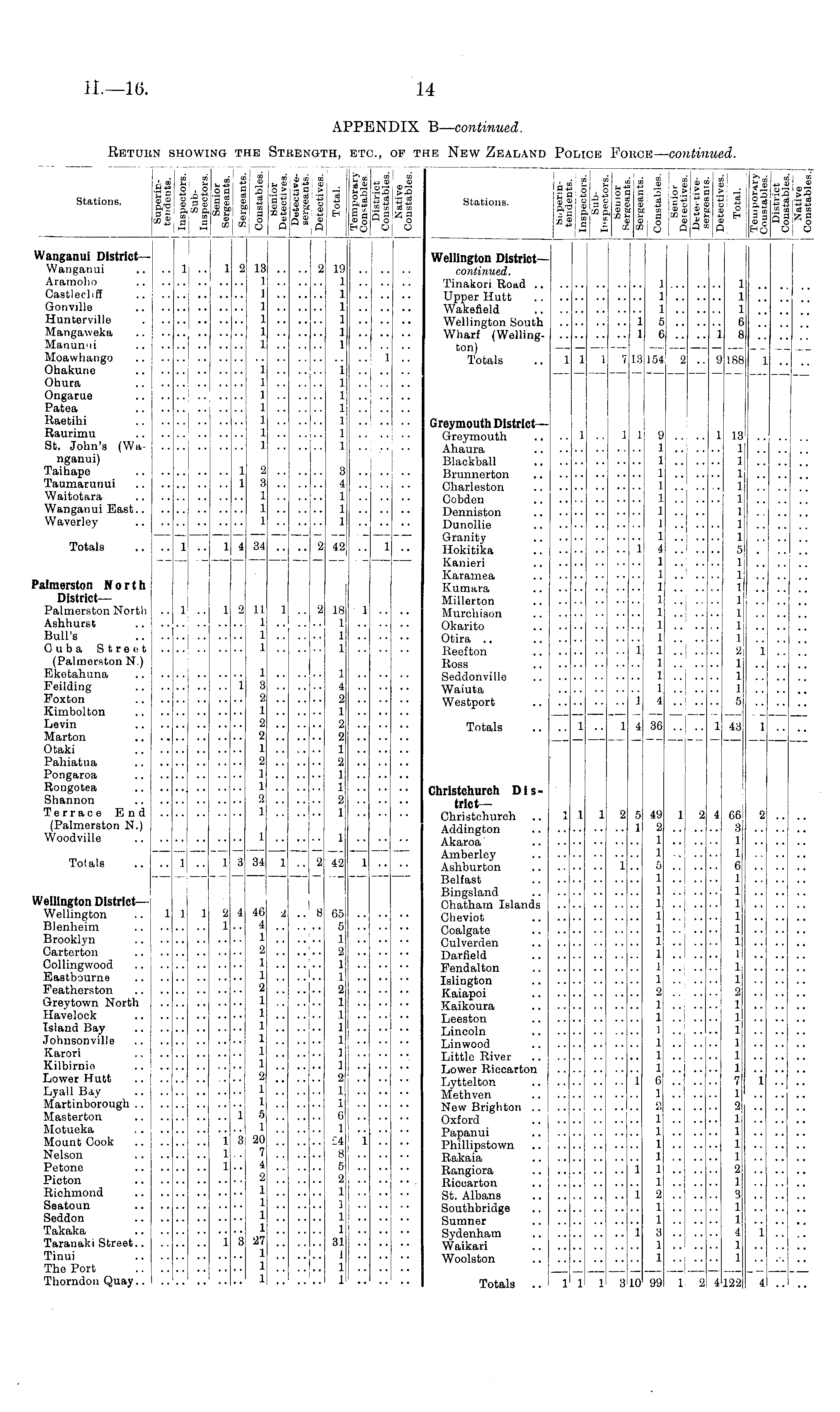APPENDIX B—continued. Return showing the Strength, etc., of the New Zealand Police Force —continued.