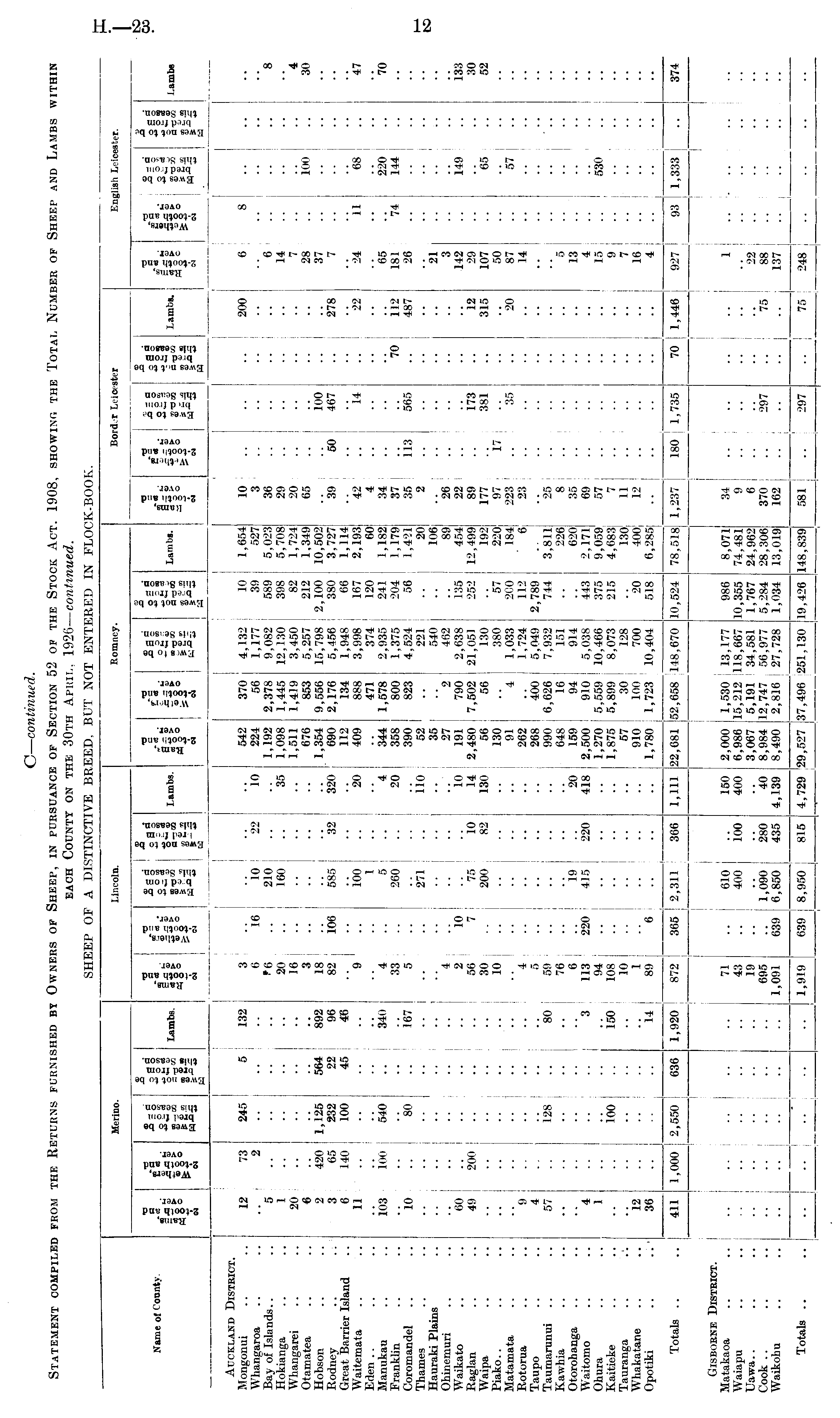 C— continued. Statement compiled from the Returns furnished by Owners of Sheep, in pursuance of Section 52 of the Stock Act. 1908, showing the Total Number of Sheep and Lambs within each County on the 30th April, 1926— continued. SHEEP OF A DISTINCTIVE BREED, BUT NOT ENTERED IN FLOCK-BOOK.