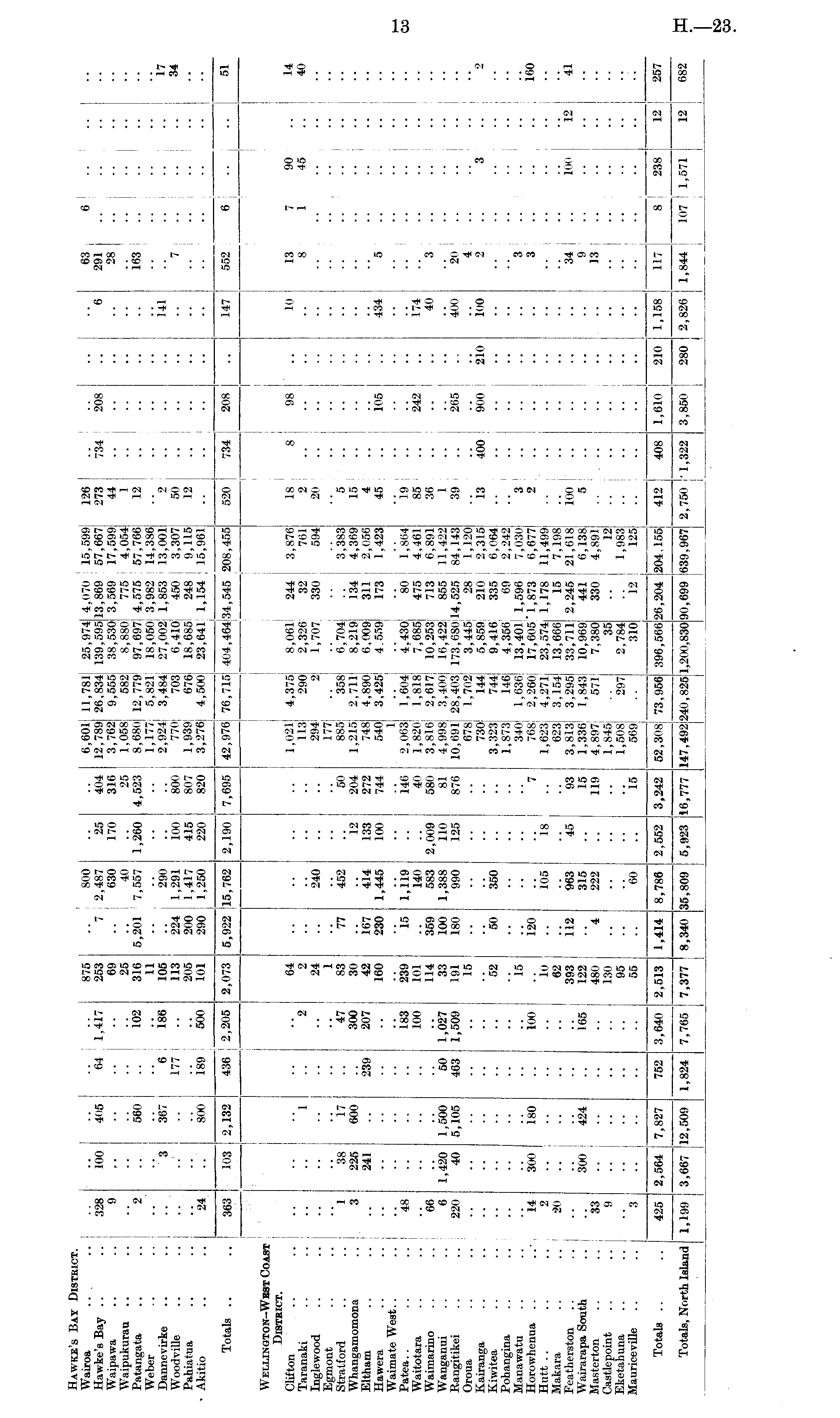 H AWlTP's! RiV DldTTfTrT Wairoa .. 875 .. 800 .. .. 6,601 11,781 25,974 4,070 15,599 126 .. 63 6 Hawke'sBay .. .. 328 100 405 64 1,417 253 7 j 2,487 25 404 12,789 26,834 139,59513,869 57,667 273 734 208 .. 6 291 Waipawa .. .. 9 69 .. 630 170 316 3,762 9,555 38,530 3,569 17,599 44 .. j 28 .. : Waipukurau .. .. .. .. .. .. .. 25 .. ! 40 .. 25 1,058 582 8,880 775 i 4,054 1 .. .. .. .. .. .. | Patangata .. .. 2 .. 560 .. 102 316 5,201 I 7,557 1,260 4,523 8,680 12,779 97,6971 4,575 ; 57,766 12 .. 163 .. Weber .. .. .. 11 .. j 1,177 5,821 18,050j 3,982 14,386 I Dannevirke .. .. .. 3 367 6 186 105 .. 290 .. .. 2,924 3,484 27, 002j 1,853 ; 13,001 2 141 .. .. i .. .. 17 Woodville .. .. .. .. .. 177 1 113 224 1,291 100 800 770 703 6,410 450 j 3,307 50 7 .. 34 Pahiatua .. .. .. .. .. .. I .. 205 200 1,417 415 807 1,939 676 18,6851 248 | 9,115 12 .. .. .. .. .. .. i Akitio .. .. 24 .. 800 189 i 500 101 290 1,250 220 820 3,276 4,500 23,641 1,154 J 15,961 .. ( .. .. .. .. .. — - 4 1 1 — — : j i Totals .. .. 363 103 2,132 436 j 2,205 2,073 5,922 15,762 2,190 7,695 42,976 76,715 404,46434,545 208,455 520 734 208 .. 147 552 6 j .. 51 _, _ ! j | | | ! - Wellington-West Coast District. Clifton .. .. 64 .. 1,021 4,375 8,061 244 3,876 18 i 8 98 10 13 7 90 14 Taranaki .. .. .. .. 1 .. 2 2 .. .. .. .. 113 290 2,326; 32 761 2 .. .. .. 8 1 45 40 Inglewood .. .. .. .. .. .. .. 24 .. 240 .. .. 294 2 1,707; 330 594 20 { .. .. .. .. .. Egmont .. .. .. .. .. .. .. 1 .. .. .. .. 177 .. .. i .. .. .. .. .. .. .. j | Stratford .. .. 1 38 17 .. 47 83 77 452 50 885 358 6,704 .. 3,383 5: .. .. .. .. .. | .. Whangamomona .. J 3 225 600 .. 300 30 .. .. 12 204 1,215 2,711 8,219 134 4,369 15 .. .. .. .. .. | Eltham .. .. .. 241 .. 239 207 42 167 414 133 272 748 4,890 6,009 311 2,056 4 .. .. .. .. .. | Hawera .. 160 230 1,445 100 744 540 3,425 4.559 173 1,423 45 .. 105 .. 434 5 Waimate West.. .. .. .. .. .. .. .. .. .. .. .. 1 .. .. .. .. .. ] .. .. .. .. .... Patea.. .. .. 48 .. .. .. 183 239 15 1,119 .. 146 2,063 1,604 4.430 80 1,864 19 Waitotara .. .. .. .. .. .. 100 101 .. 140 .. 40 1,820 1,818 7,685 475 4,461 85 I 242 .. 174 .. .. .. Waimarino .. .. 66 .. .. .. .. 114 359 583 2,009 580 3,816 2,617 10,253 713 6,891 36 .. i .. 40 3 .. .. .. Wanganui .. .. 6 1,420 1,500 50 1,027 33 100 1,388 110 81 4,998 3,400 16,422! 855 11,422 1 .. .. .. .. .. .. j Kangitikei .. .. | 220 40 5,105 463 1,509 191 180 990 125 876 10,691 28,403 173,680114,525 84,143 39 i .. 265 .. 400 20 s .. Oroua .. .. I .. .. .. .. .. 15 .. .. .. .. 678 1,702 3,445i 28 1,120 .. | .. .. .. .. 4 ; Kairanga .. .. .. .. .. .. .. .. .. .. .. .. 730 144 5,859 210 2,315 13 400 900 210 100 2 3 2 Kiwitea .. .. .. .. .. .. .. 52 50 350 .. .. 3,323 744 9,416; 335 6,064 .. .. .. .. .. .. Pohangina .. .. .. .. .. .. .. .. .. .. .. .. 1,873 146 4,356 69 2,242 .. Manawatu .. .. .. •• •• •• •• •• •• •• •• 340 1,636 13,401! 1,596 7,030 3 j .. .. .. .. 3 ! Horowhenua .. 14 300 180 .. 100 .. 120 .. .. 7 768 2,260 17,605" 1,873 6,677 2 .. .. .. .. 3 .. .. .. 160 Hutt.. .. .. j 2 .. .. .. .. 10 .. 105 18 .. 1,623 4,271 23,574 1,178 11,499 .. .. .. .. .. .. j Makara .. .. 1 20 .. I .. .. 62 .. .. .. .. 623 3,154 13,666 15 7,198 .. I .. .. .. .. .. j .. Featherston .. .. j .. .. | .. .. .. 393 112 963 45 93 3,813 3,295 33,711 2,245 21,618 100 .. .. .. 34 j 100 12 41 Wairarapa South .. | .. 300 I 424 .. 165 122 .. 315 .. 15 1,336 1,843 10,969 441 6,138 5| .. .. .. .. 9 Masterton .. .. 33 .. .. .. .. 480 4 222 .. 119 4,897 571 7,380 330 4,891 .. | . .. .. .. .. 13 Castlepoint .. .. 9 .. .. .. .. 130 .. .. .. .. 1,845 .. 35 12 .. i .. .. .. .. .. } .. Eketahuna .. .... .. .. .. .. 95 .. .. .. .. 1,508 297 2,784 .. 1,983 .. | .. .. .. .. .. j Mauriceville .. .. 3 .. .. .. .. 55 .. 60 .. 15 569 .. 310 12 125 | .. .. .. .. .. j Totals .. .. 425 2,564 7,827 752 3,640 2,513 1,414 8,786 2,552 3,242 52,308 73,956 396,566 26,204 204,155 412 408 1,610 210 1,158 117 8 | 238 12 257 Totals, North Island 1,199 3,667 12,509 1,824 7,765 7,377 8,340 35,809 5,923 16,777 147,492 240,8251,200,830 90,699 639,967 2,750 '1,322 3,850 280 2,826 1,844 107 ' 1,571 12 682 • I ■ 1 j_. : ■ I I ■ t . ■