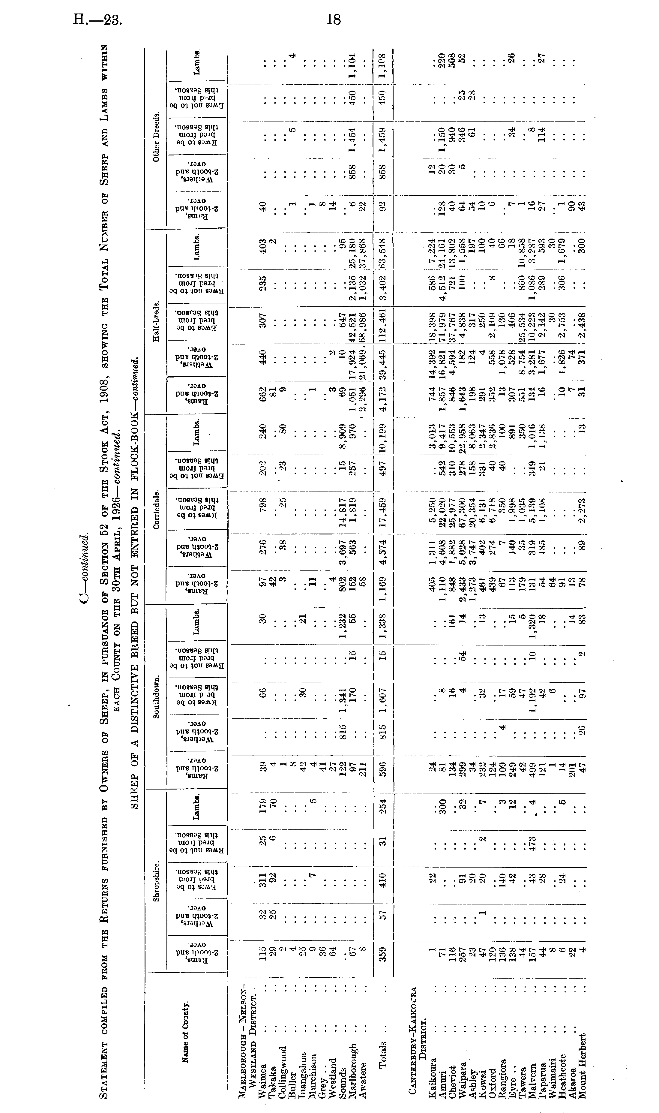 C— continued. Statement compiled from the Returns furnished by Owners of Sheep, in pursuance of Section 52 of the Stock Act, 1908, showing the Total Number of Sheep and Lambs within each County on the 30th April, 1926— continued. SHEEP OF A DISTINCTIVE BREED BUT NOT ENTERED IN FLOCK-BOOK— continued.