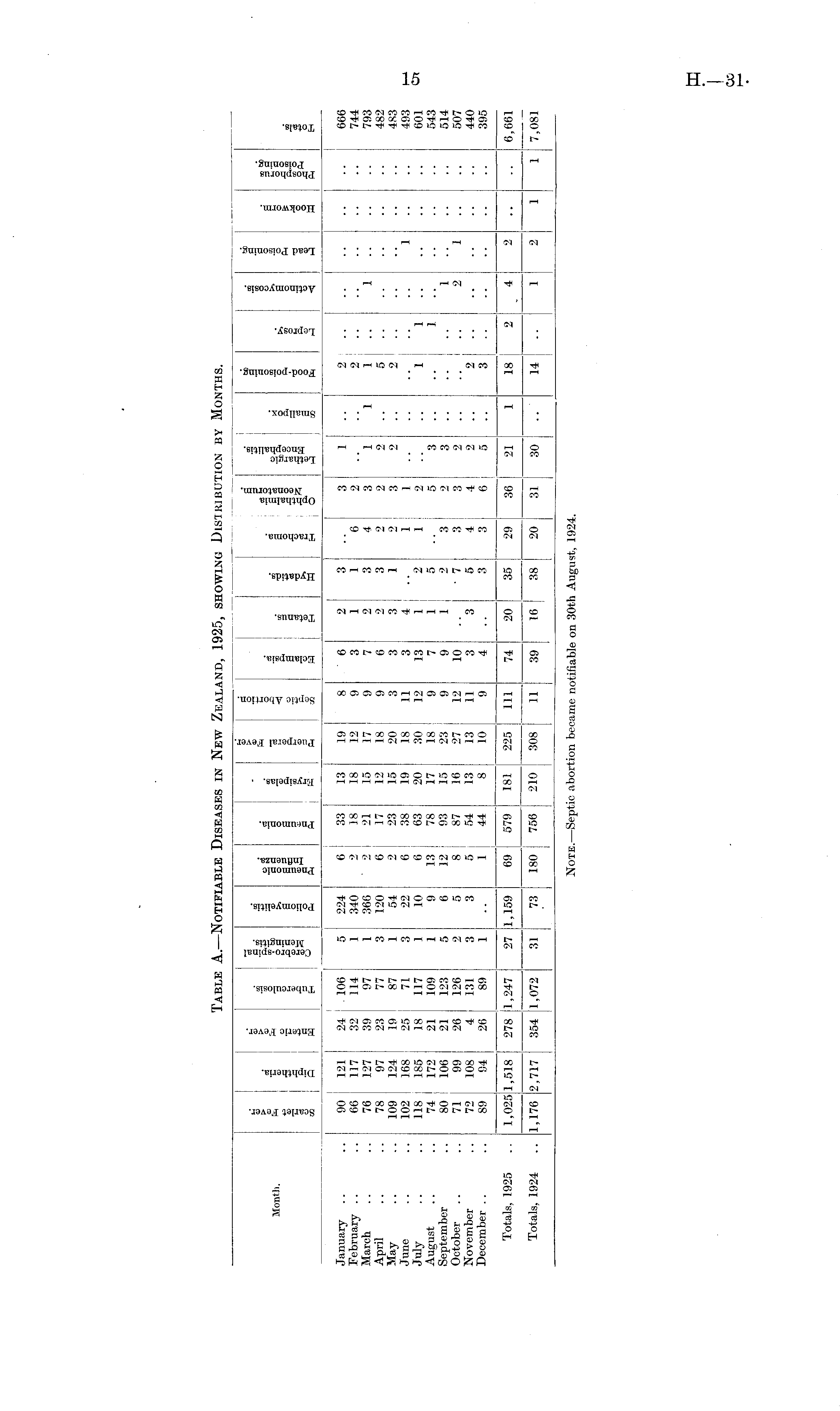 Table A.—Notifiable Diseases in New Zealand, 1925, showing Distribution by Months.