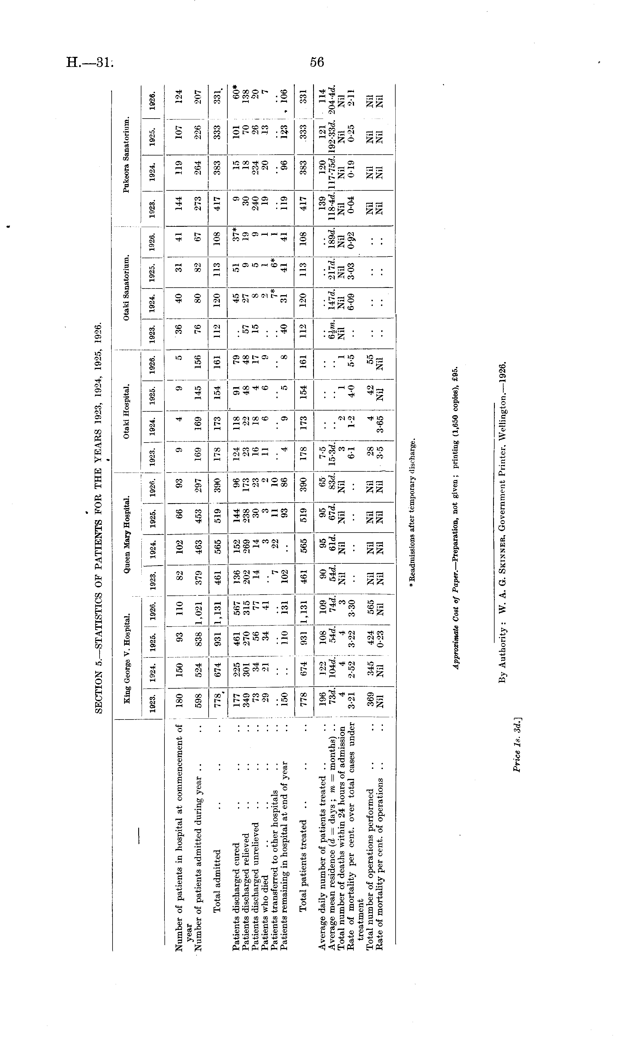 SECTION 5.—STATISTICS OF PATIENTS FOR THE YEARS 1923, 1924, 1925, 1926.
