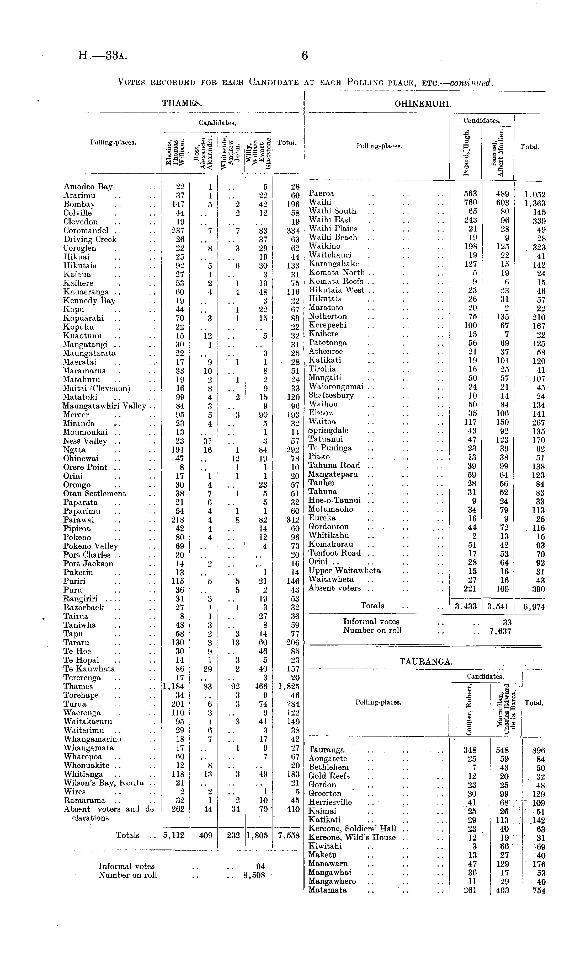 Votes recorded for each Candidate at each Polling-place, etc. —continued.