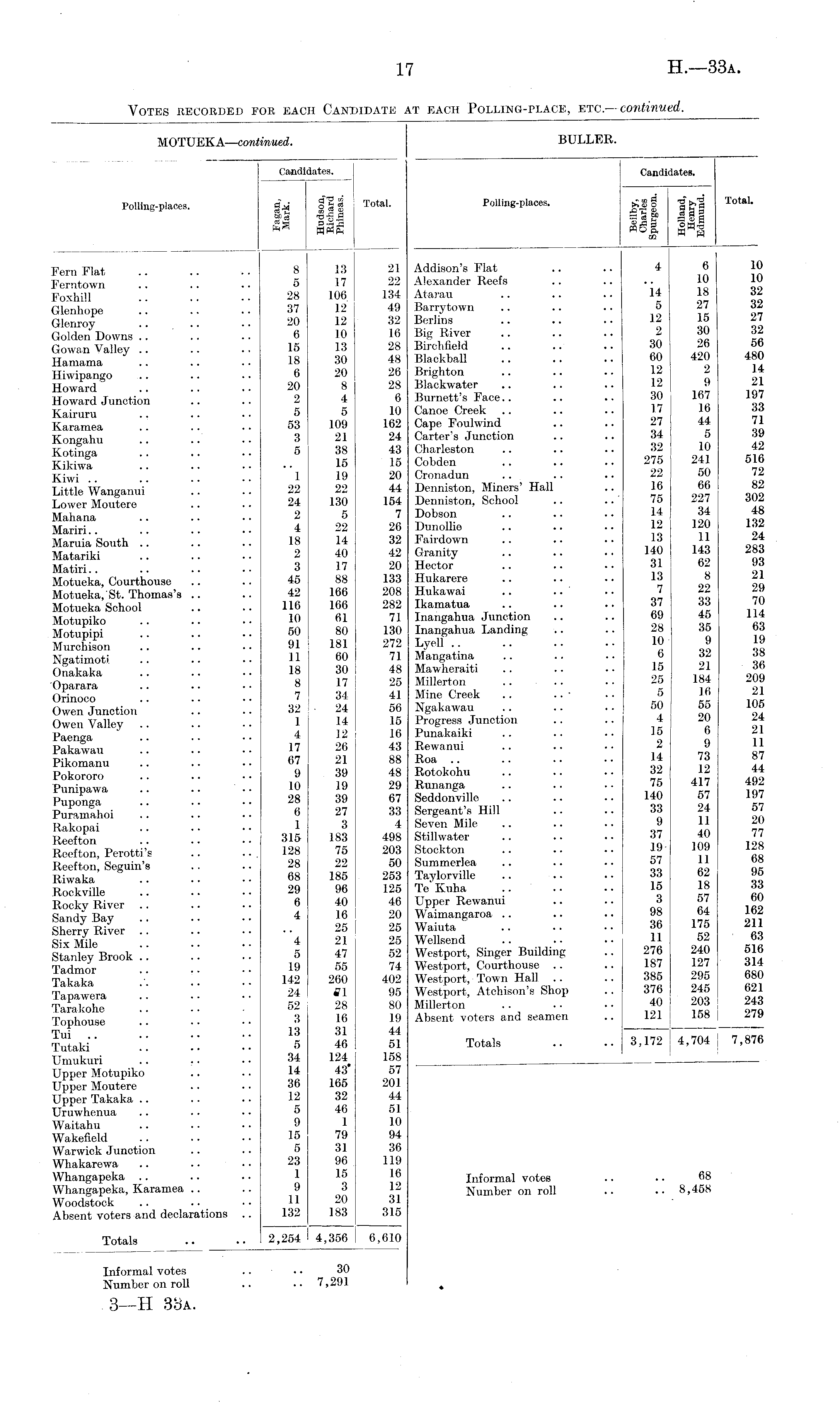 Votes recorded for each Candidate at each Polling-place, etc. —continued.