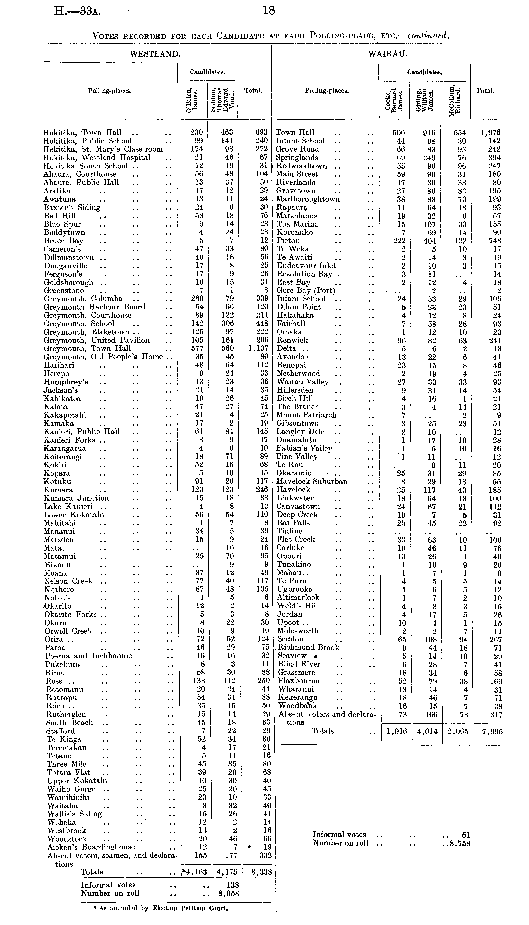 Votes recorded for each Candidate at each Polling-place, etc. —continued.