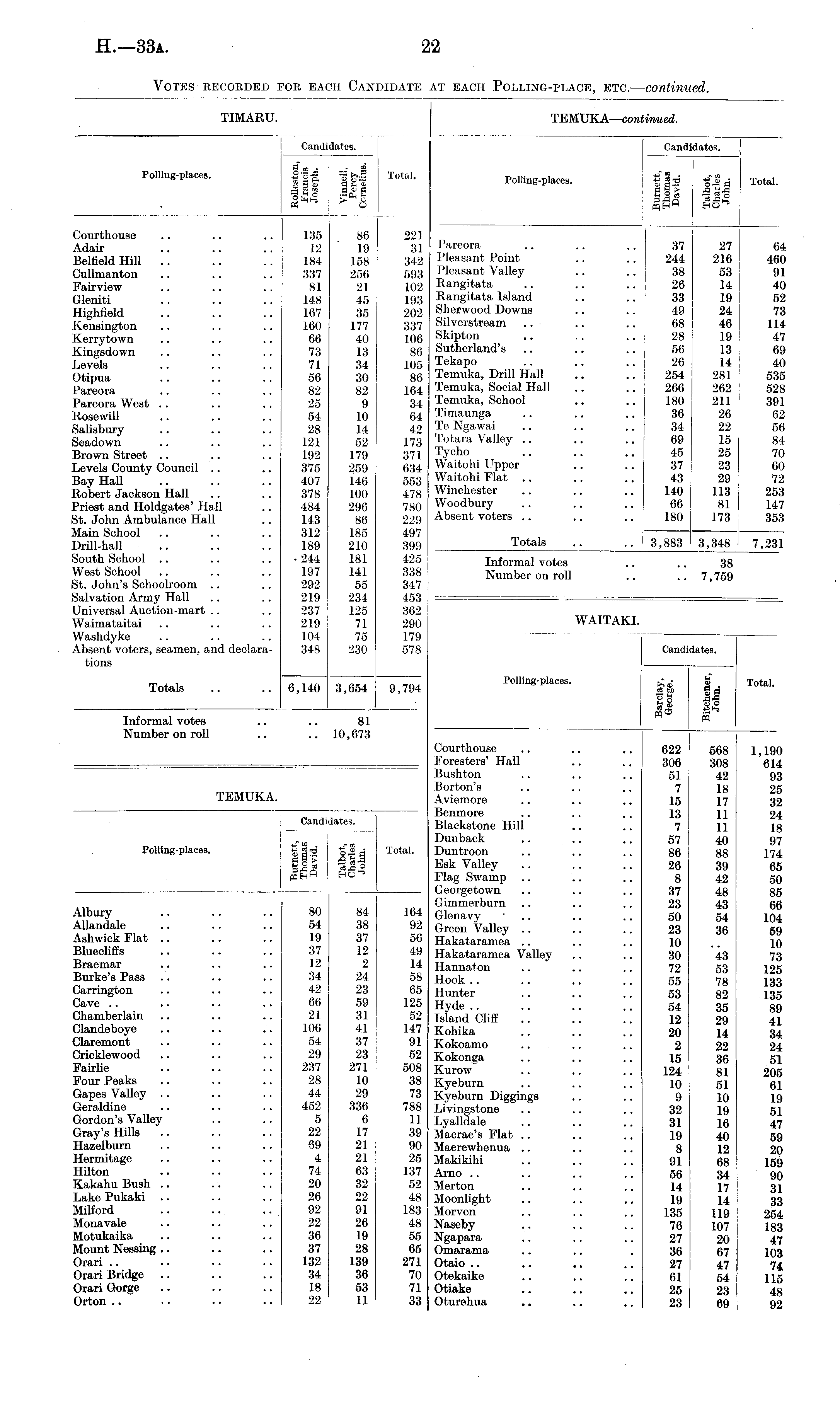 Votes recorded for each Candidate at each Polling-place, etc. —continued.