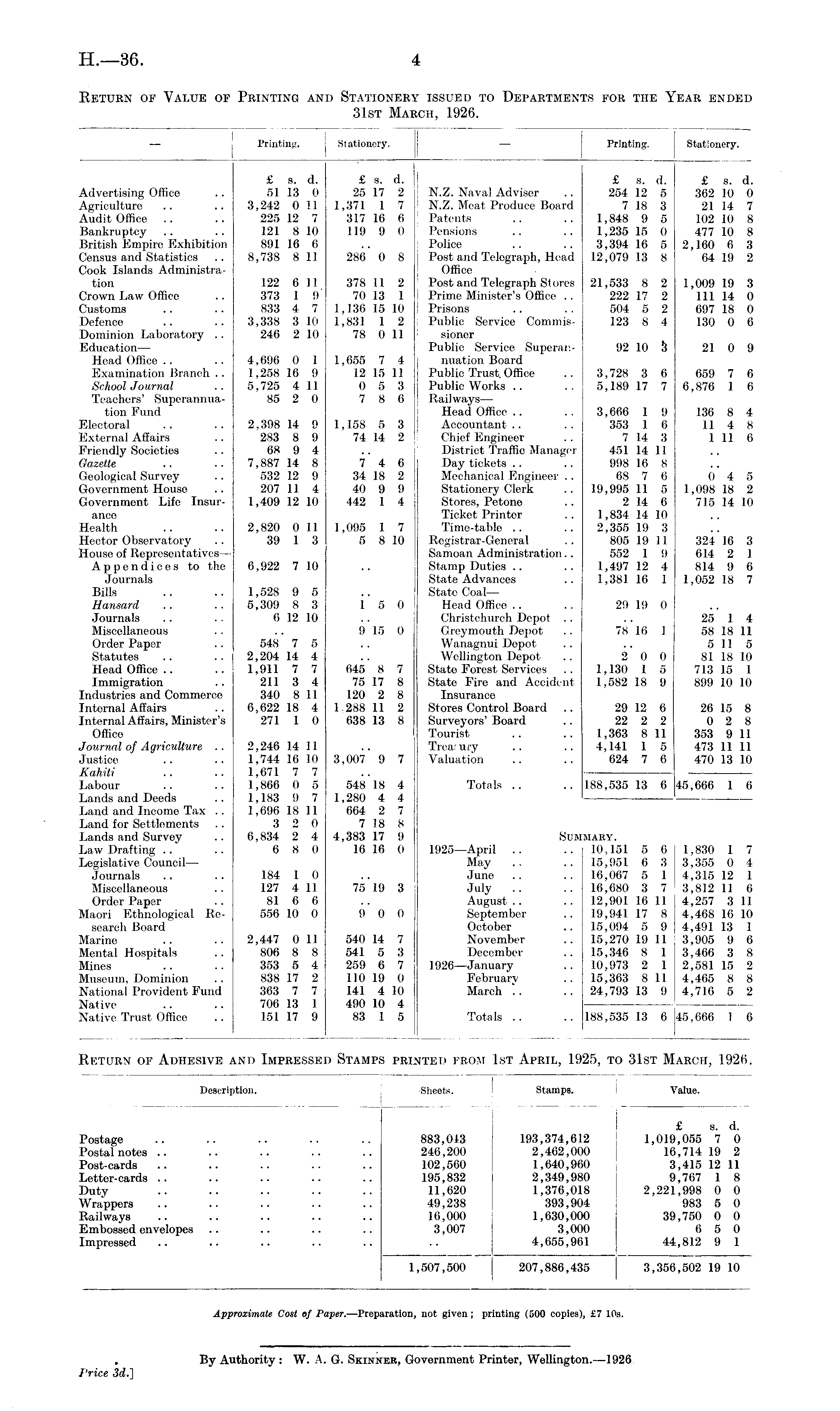 Return of Adhesive and Impressed Stamps printed from 1st April, 1925, to 31st March, 1926.